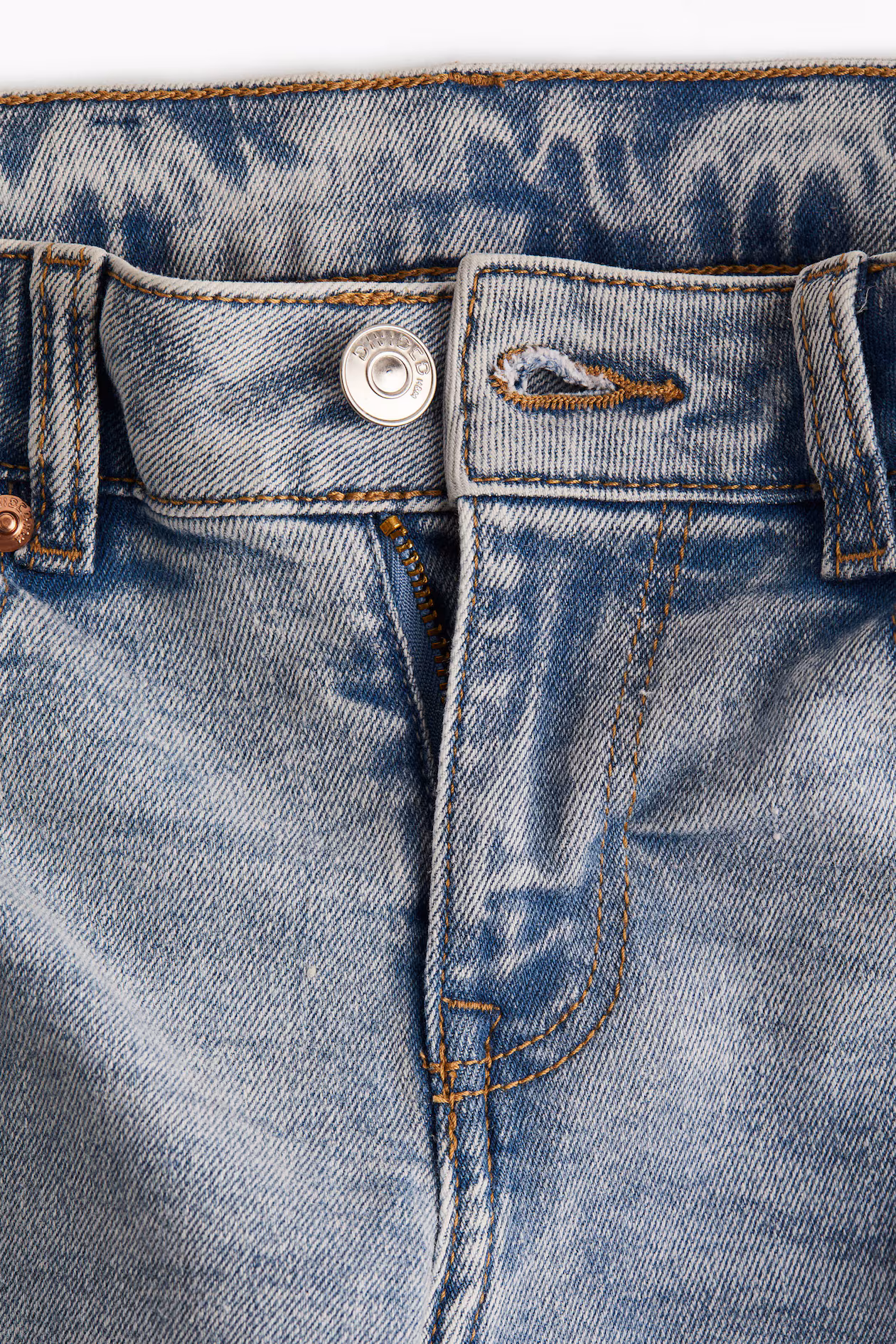 Ankle-length jeans in denim with gentle stretch for good comfort. Slim fit from waist to thigh and flared from knee to hem. Low waist and zip fly with button. Mock front pockets, regular back pockets, and flared legs. A defining shape from season to season.