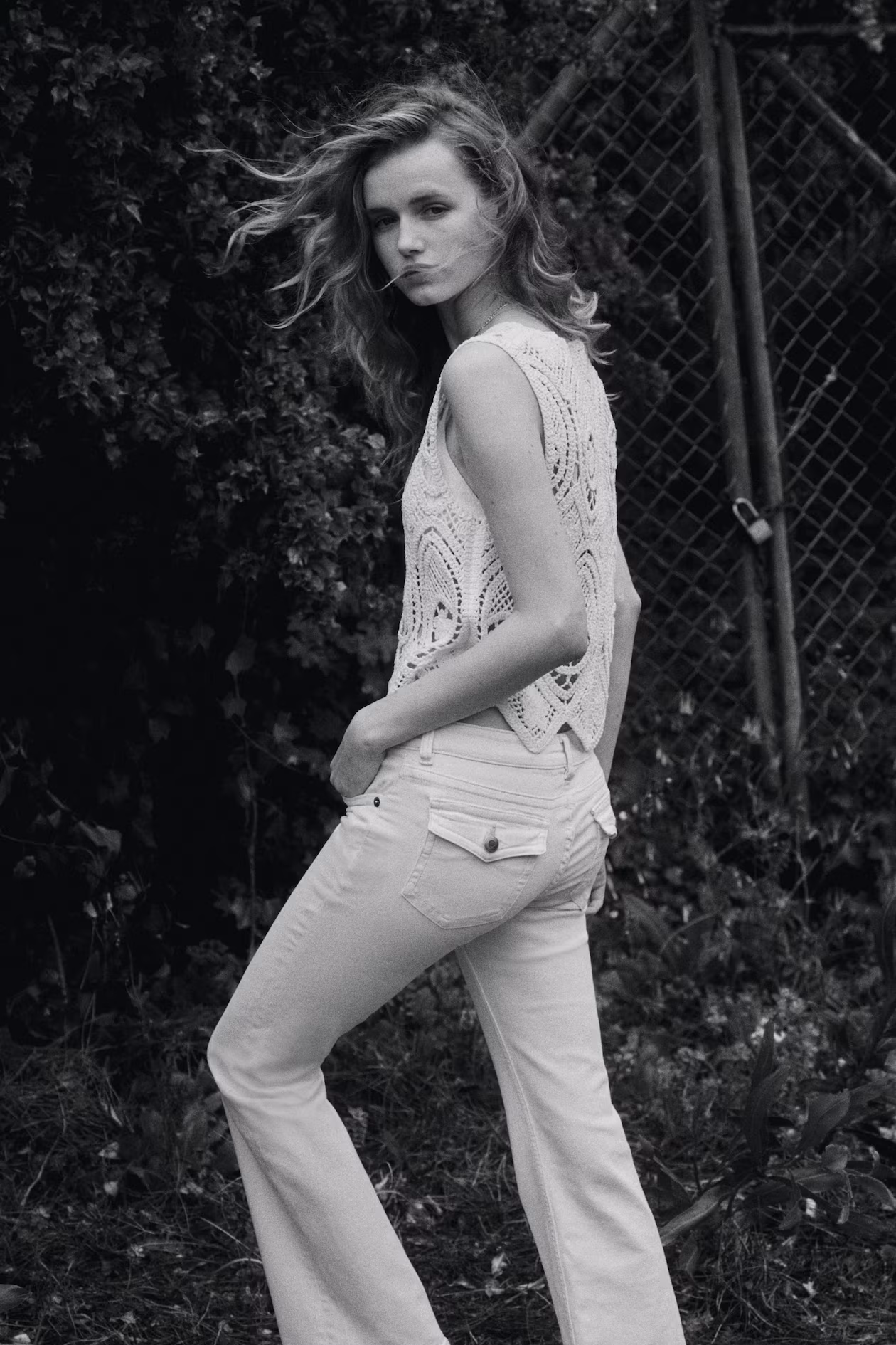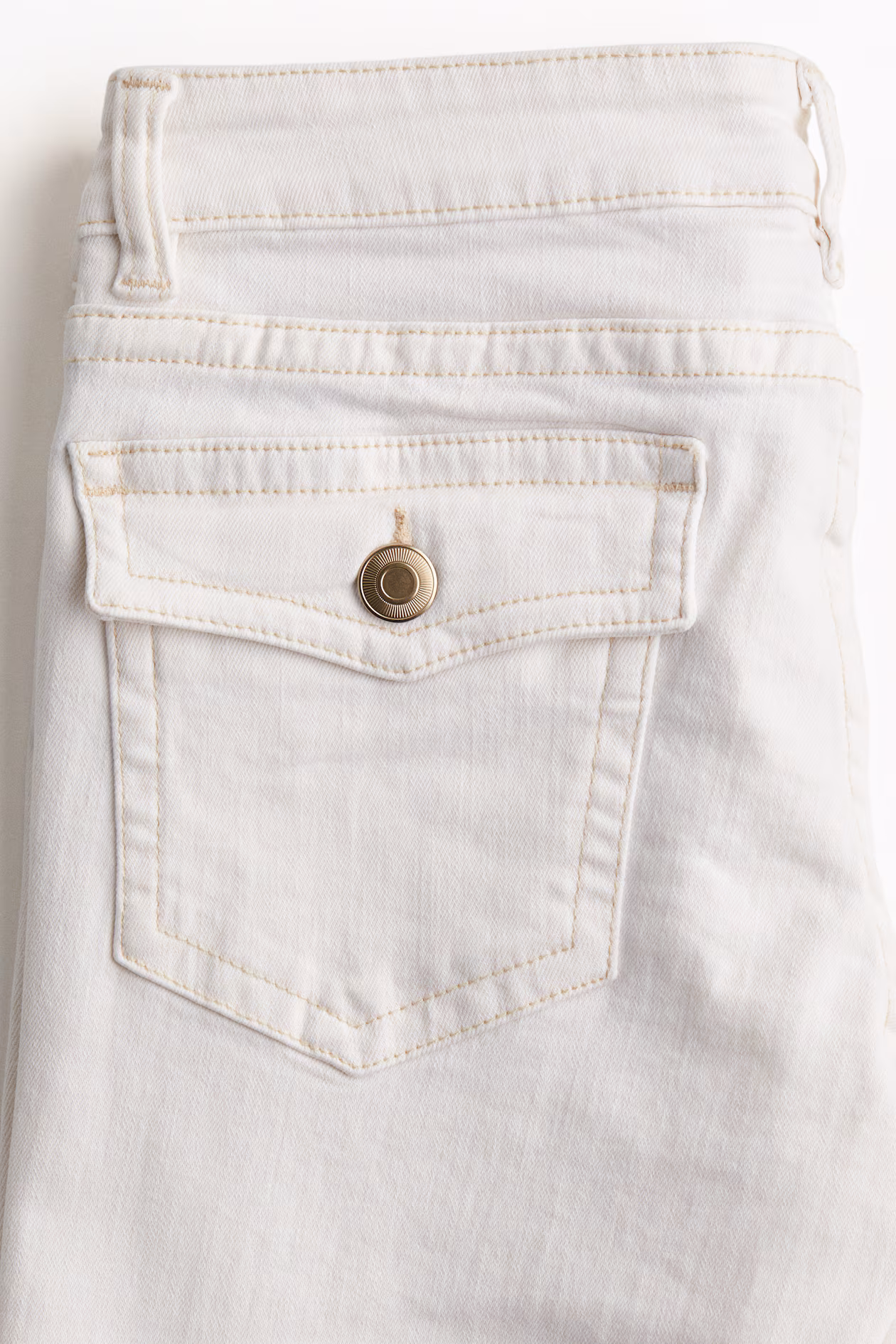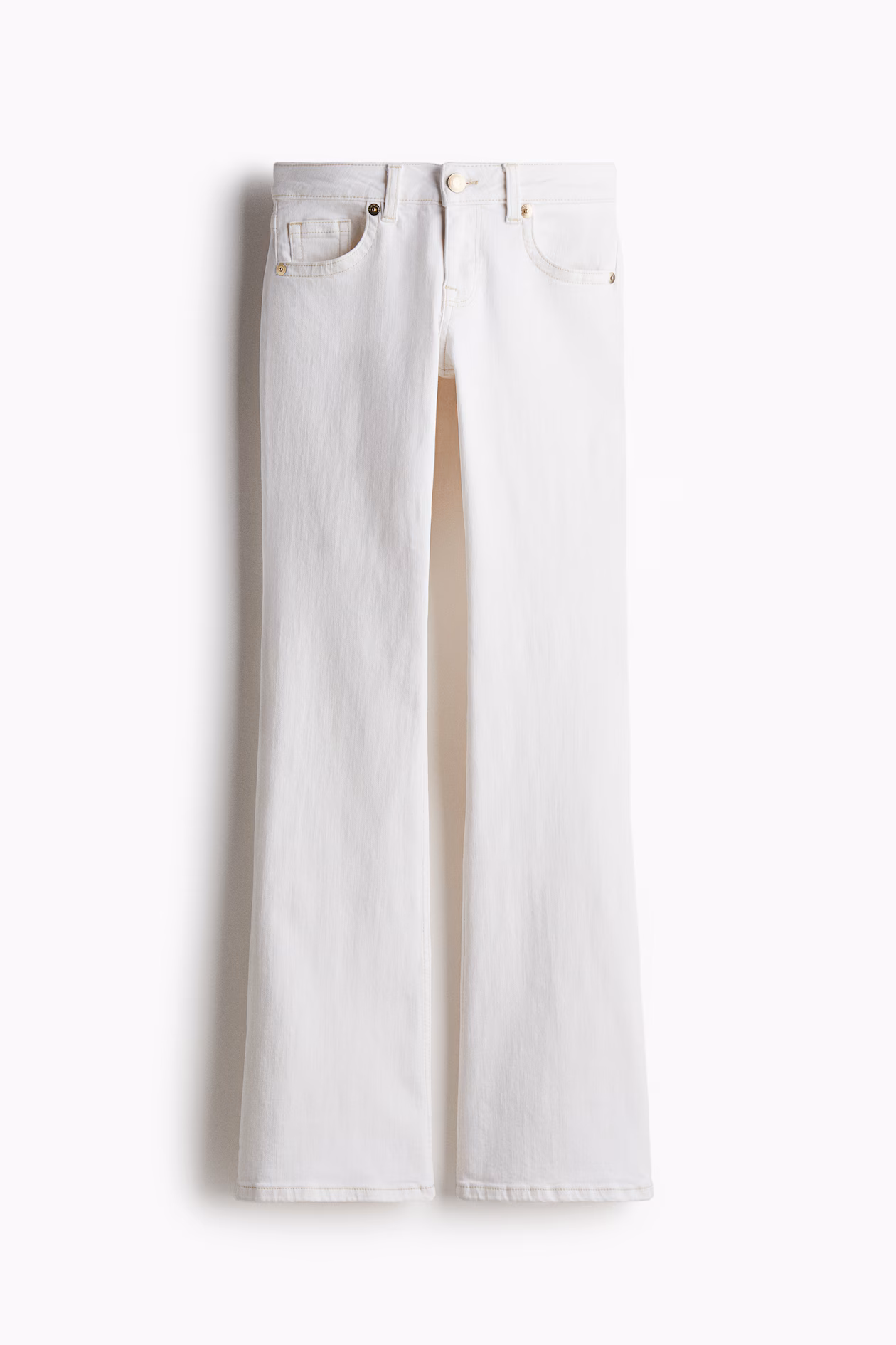 5-pocket jeans in denim with gentle stretch for good comfort. Slim fit from waist to thigh and flared cut from knee to hem. Low waist and zip fly with button. Back pockets with flap and button. Flared, regular-length legs designed to fall at top of foot with little or no stacking. A fashion icon from the 70s to now.
