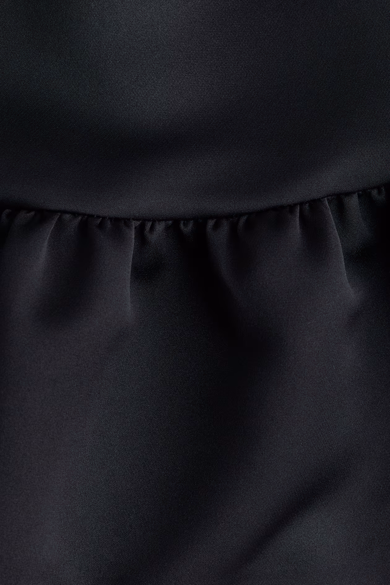 Fitted mini skirt in woven fabric. Regular waist, concealed zipper at one side, and a gathered seam above hem for a flared silhouette. Partially lined.