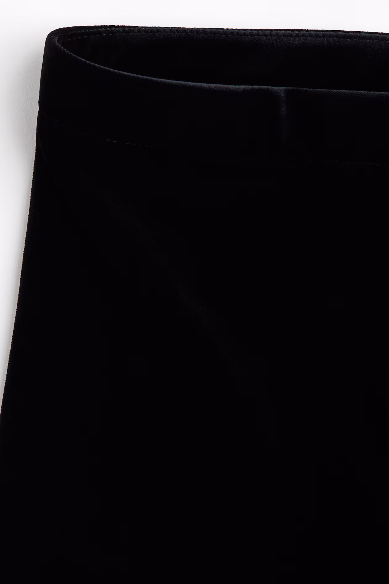 Fitted pants in soft velour. High waist, zip fly with hook-and-bar fastener, and welt back pockets. Flared legs.