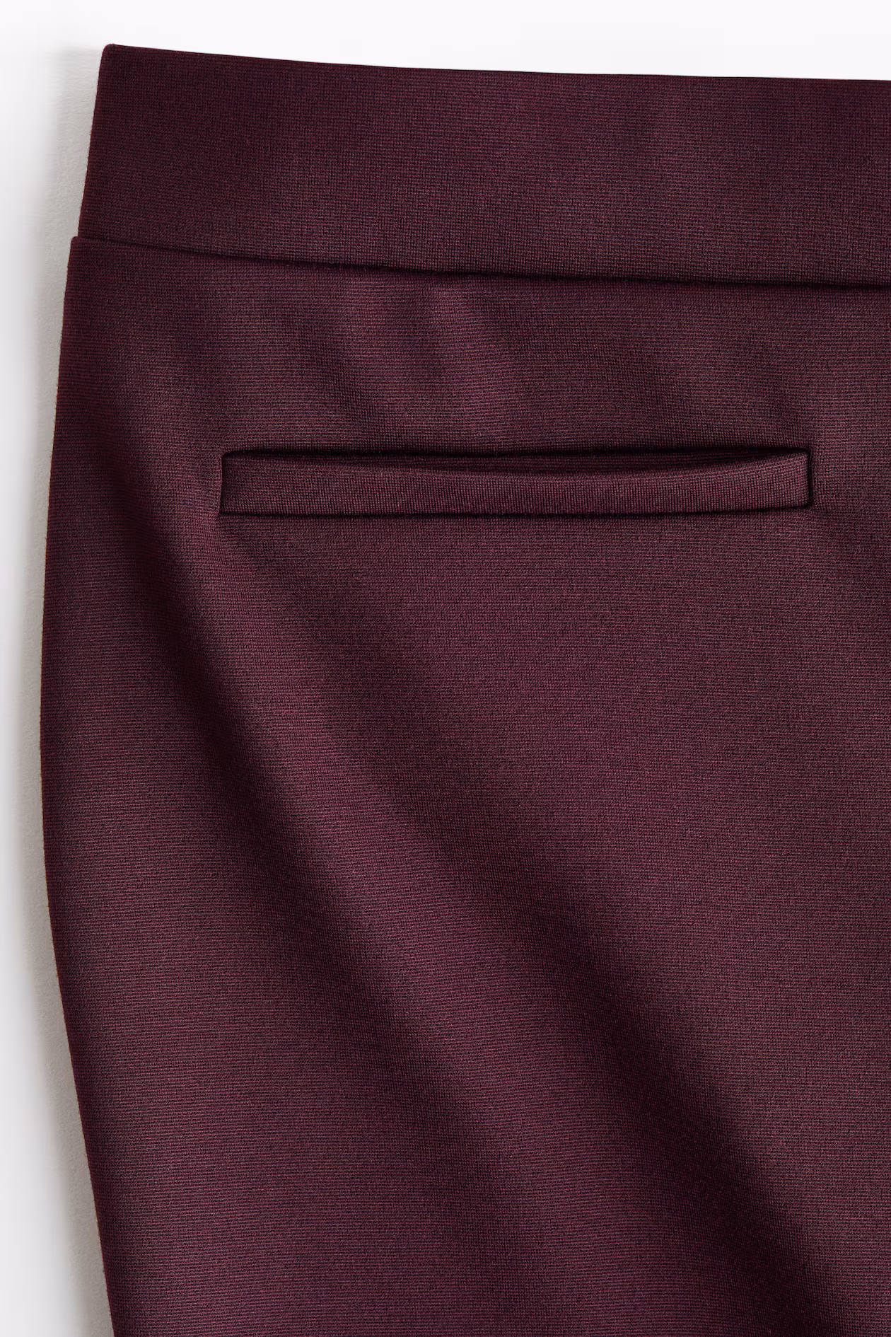 Fitted pants in ponte jersey. High waist, mock welt front pockets, and flared legs.