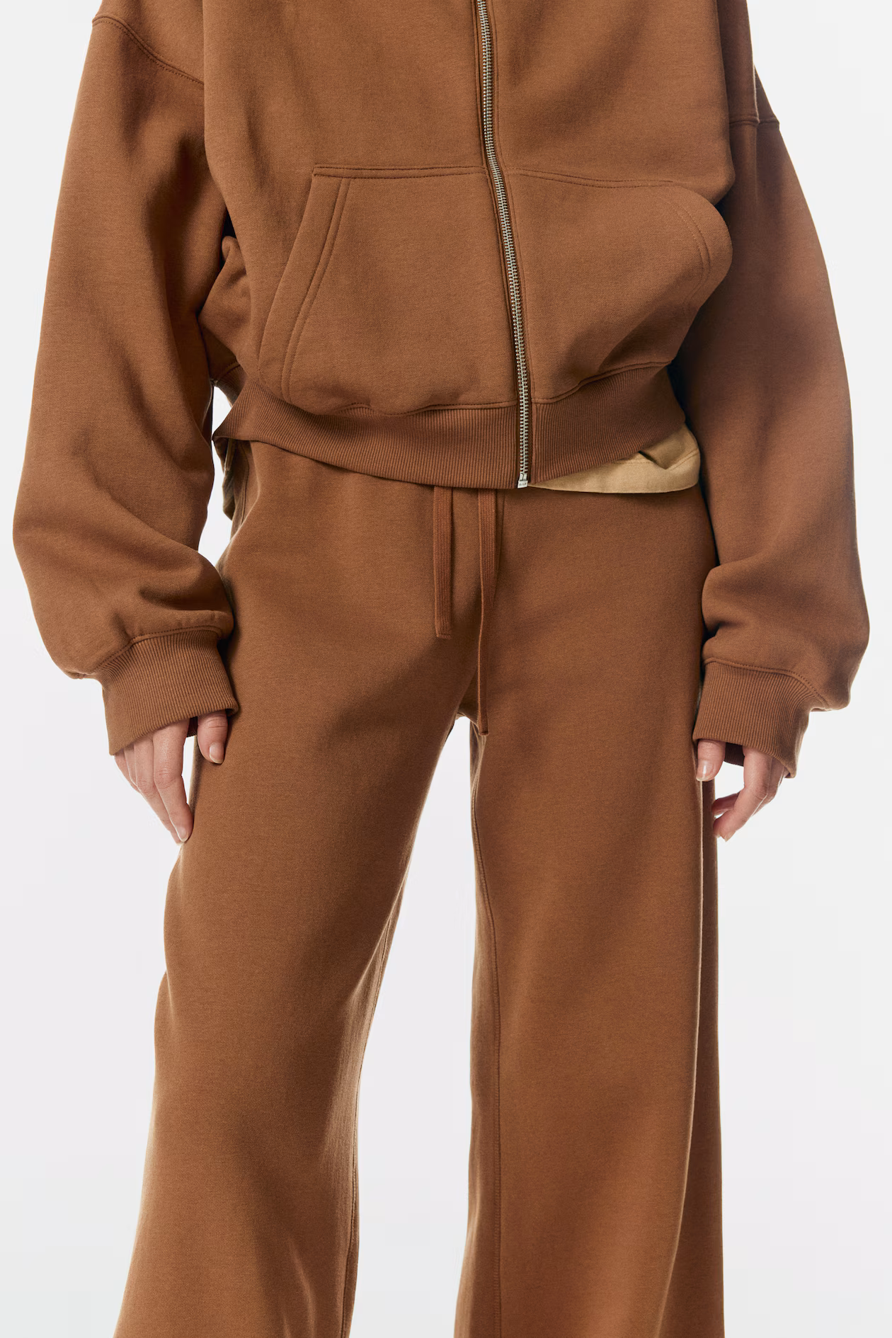 Sweatpants with a soft, brushed inside. Regular waist, drawstring and covered elastic at waistband, and legs with gently flared hems.