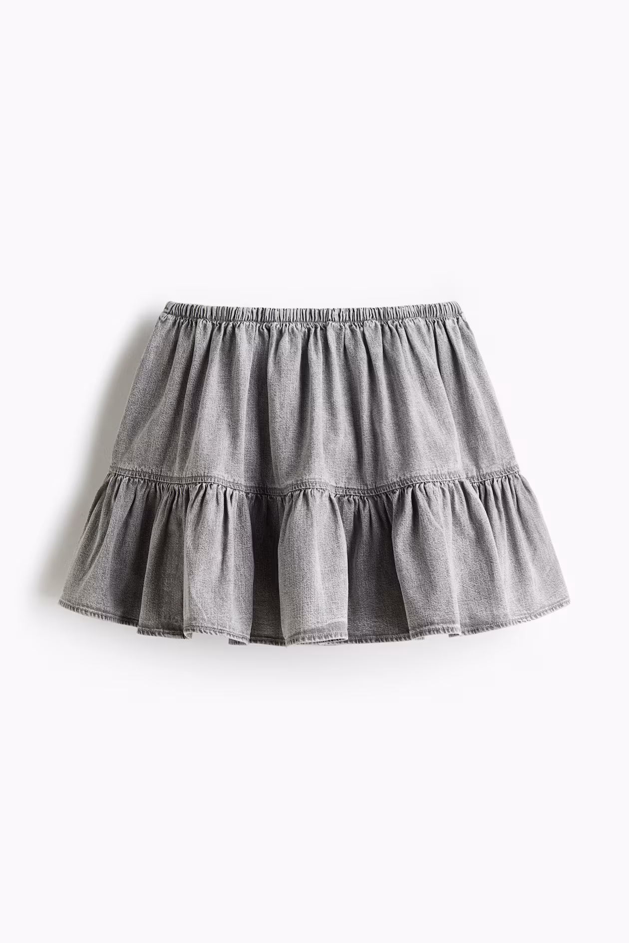 Mini skirt in woven fabric with an elasticized waistband and a wide flounce at hem.