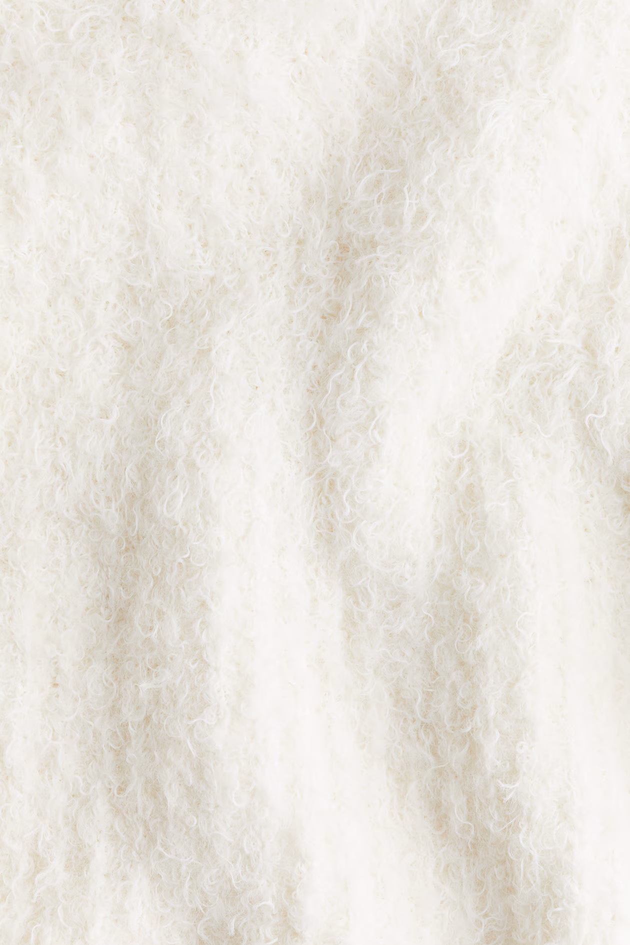 Short, fluffy sweater in a soft rib knit. Round neckline, shoulder pads, and long sleeves.