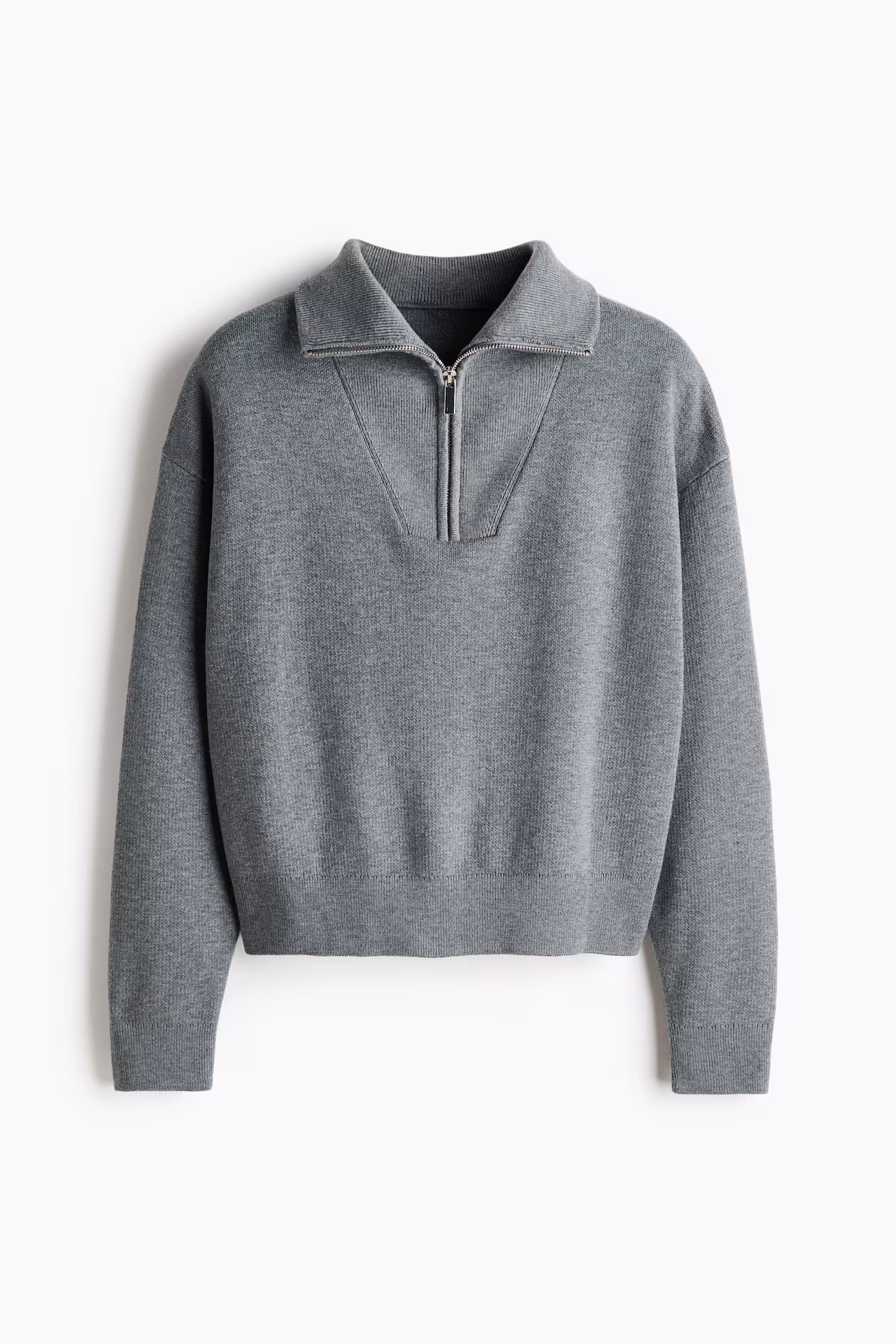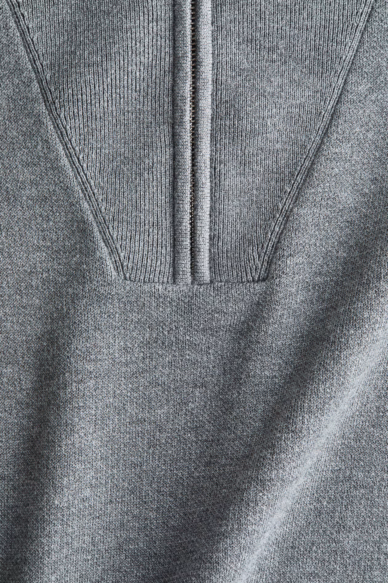 Loose-fit sweater in a soft knit with wool content. Mock turtleneck, half-zip, and dropped shoulders. Ribbing at neck, cuffs, and hem.