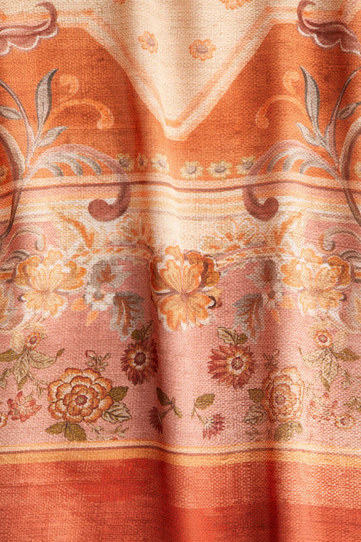 Short halterneck top in soft woven fabric. Cowl neck, open back, and wide ties at back.
