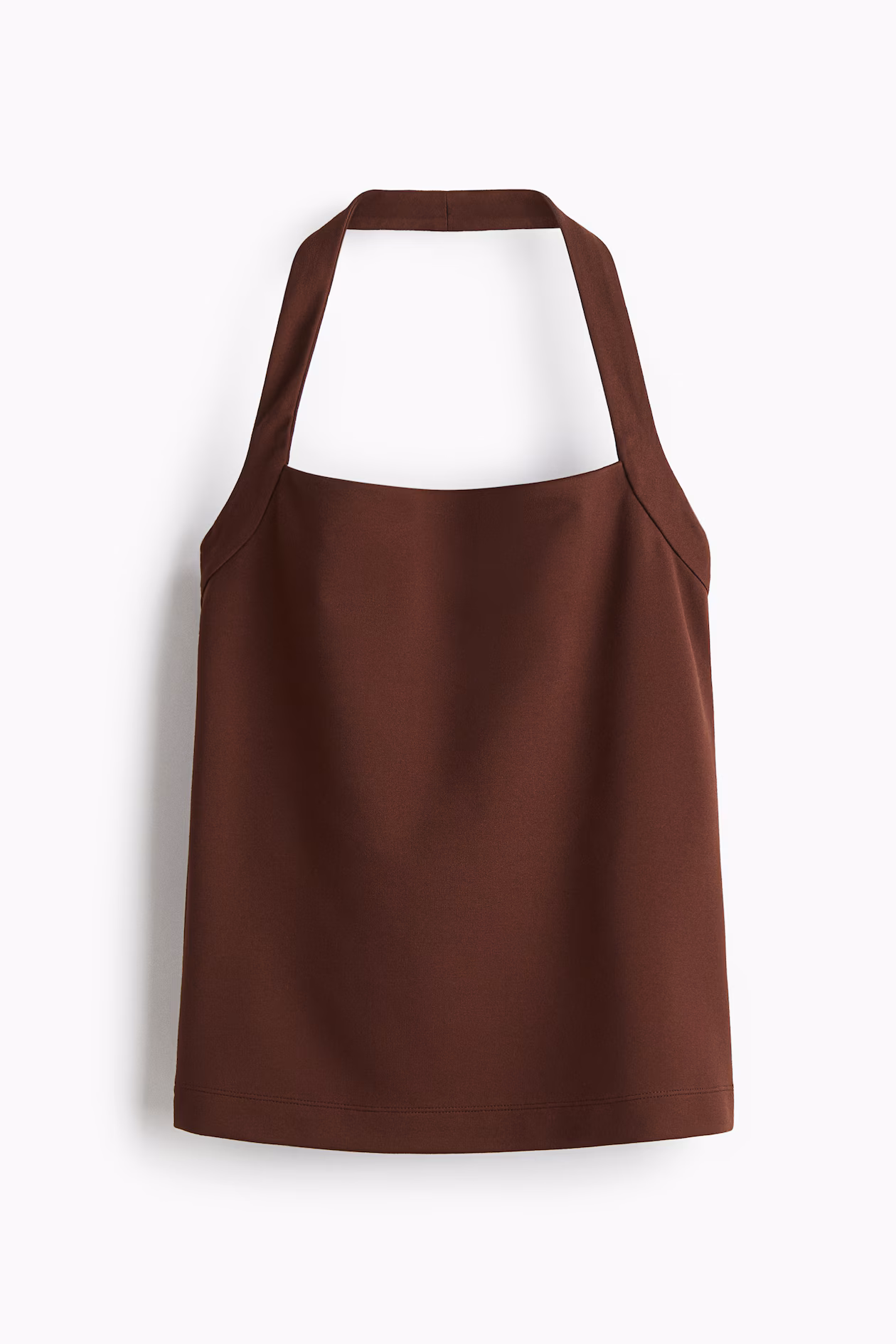 Fitted halterneck top in thick jersey with a square neckline. Partly lined.