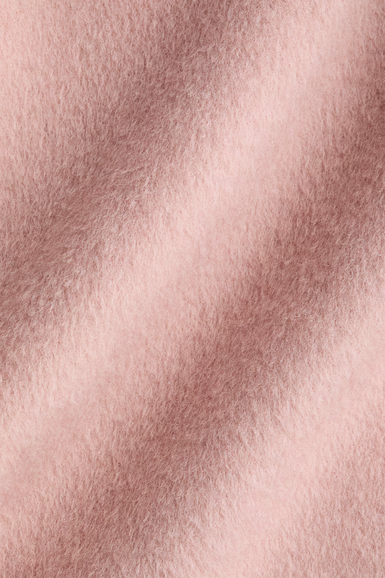 Short, handmade coat in a felted wool blend. Wrapover front, a removable tie belt at waist, and patch front pockets. Dropped shoulders and long sleeves. Unlined.