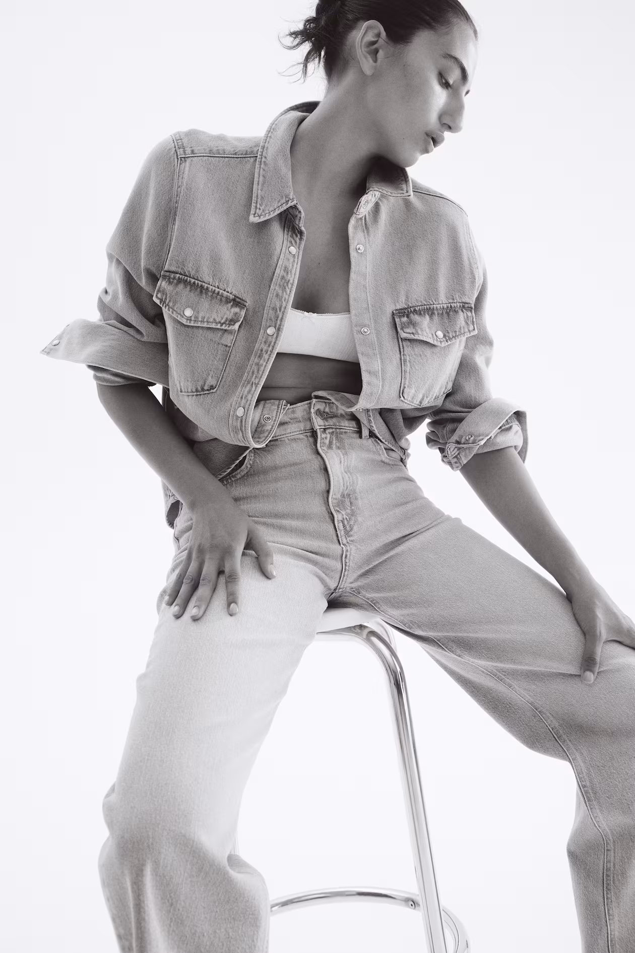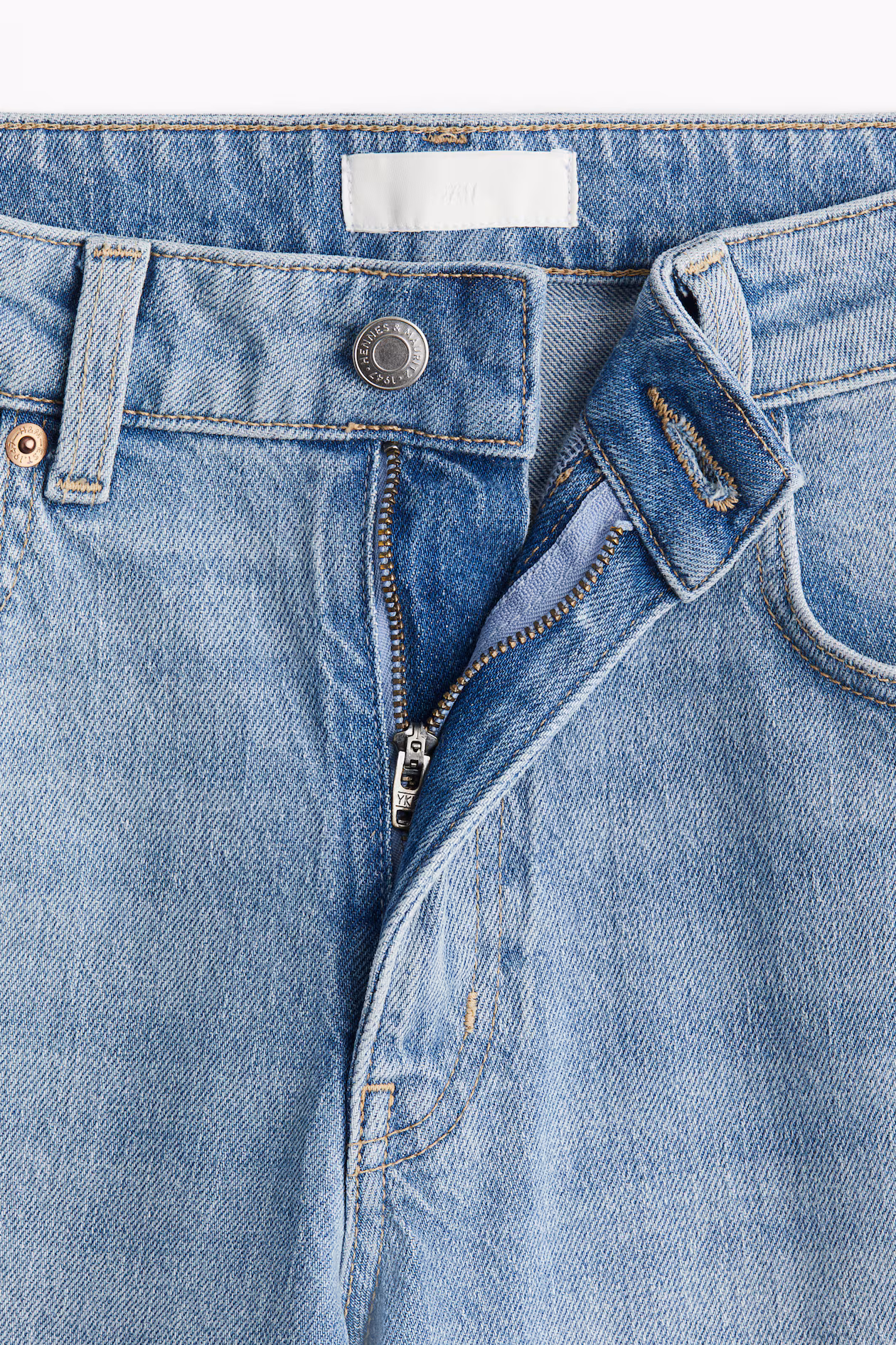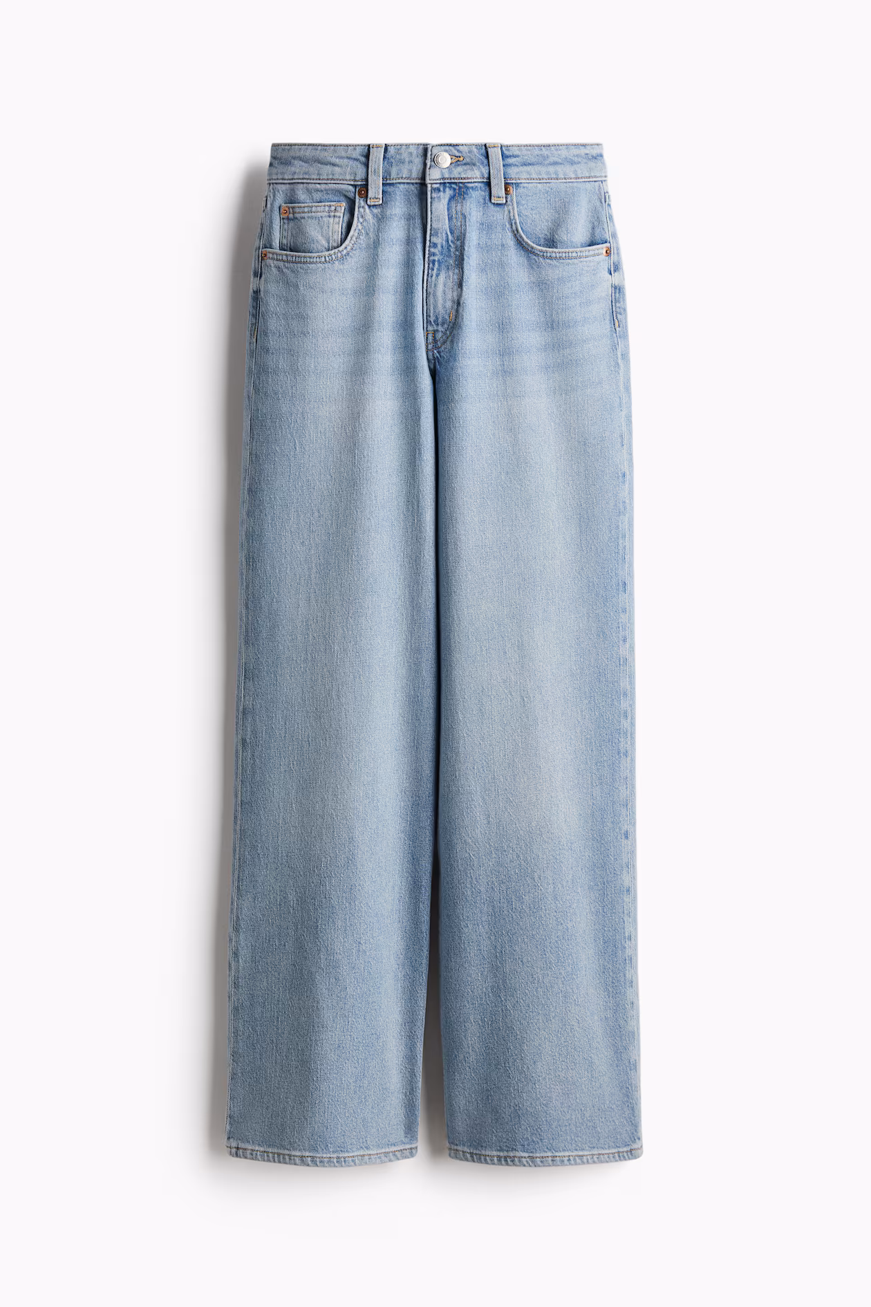 5-pocket jeans in washed cotton denim. High waist, zip fly and button and straight, wide legs.