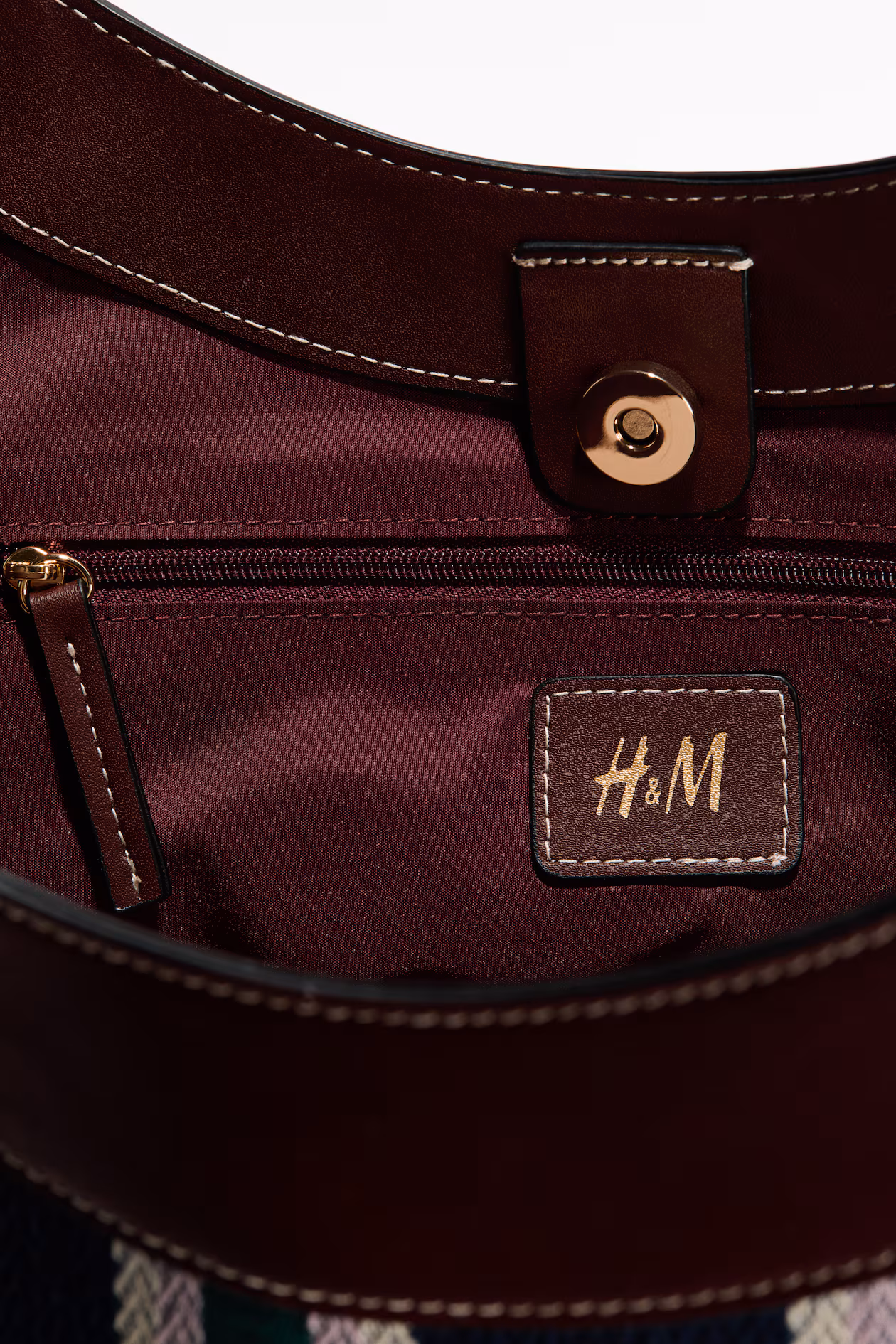 Herringbone-weave shopper in cotton with handles and upper edge in coated fabric. Concealed magnetic fastener at top and an inner compartment with zipper. Lined.