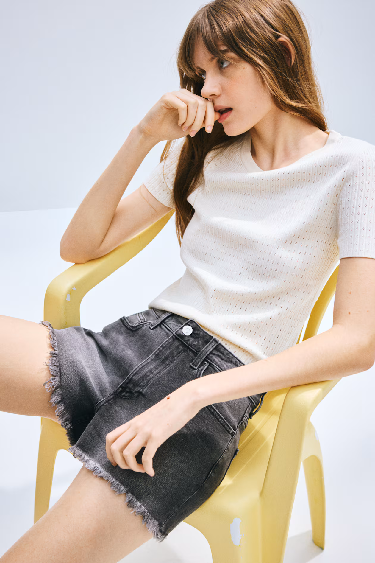 Relaxed-fit, 5-pocket shorts in cotton denim with gentle stretch. High waist and zip fly with button.