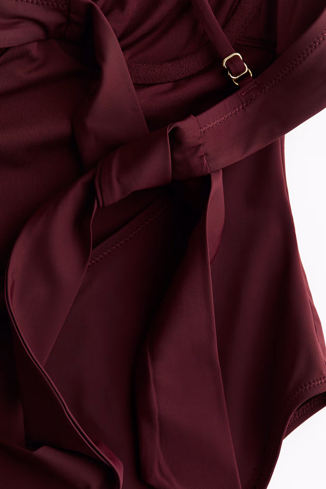 Fully lined swimsuit with adjustable shoulder straps. Scoop back with wide ties, underwire cups for shaping and good support, and high-cut legs. Cutaway coverage at back.