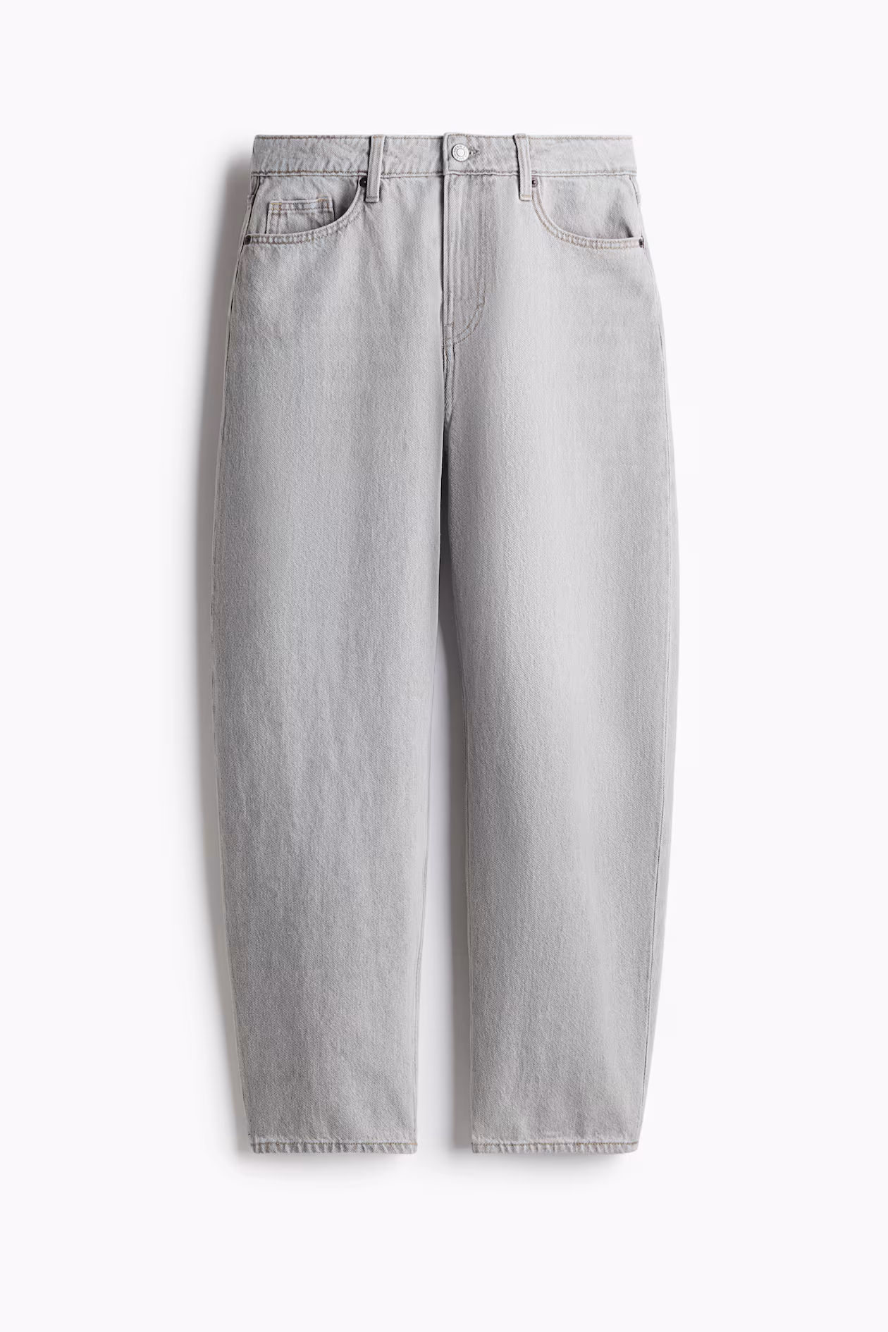 5-pocket jeans in rigid denim that feels firm at first, softening and relaxing with wear. Loose fit from hip to thigh. High waist and zip fly with button. Voluminous, curved legs, tapered to hems. Regular length, designed to fall at top of foot with little or no stacking. A relaxed and cool denim statement.