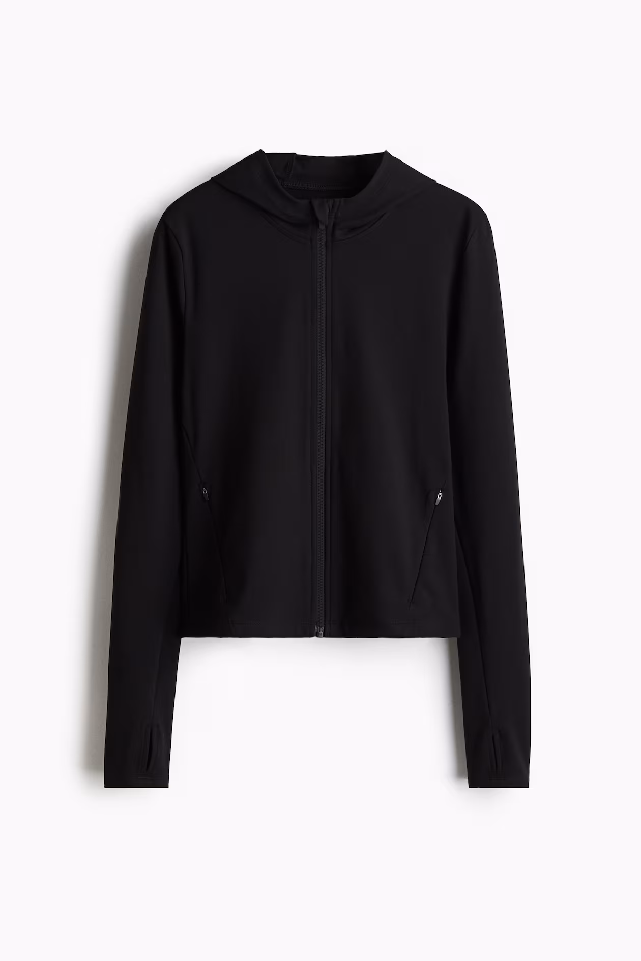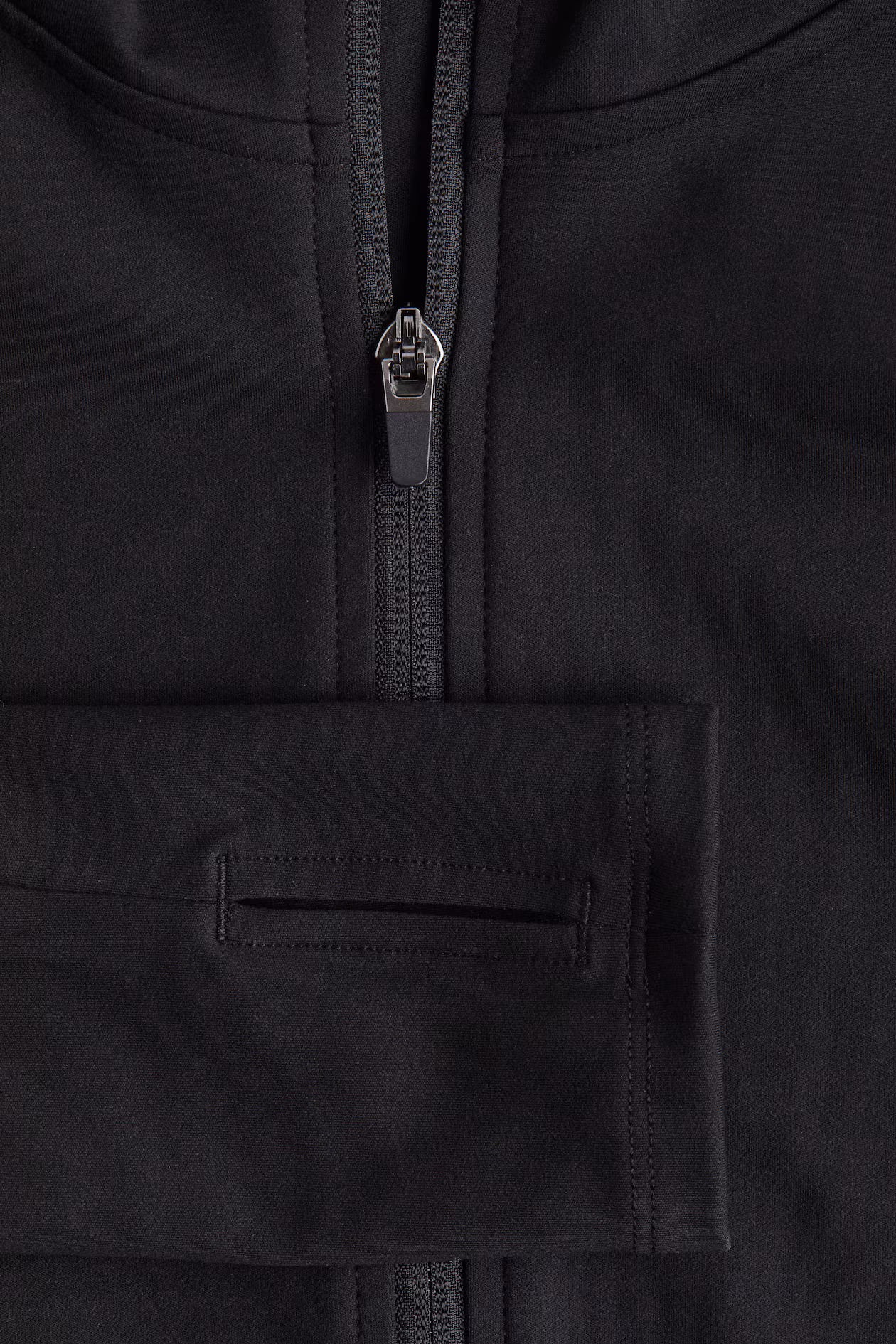 Slim-fit activewear jacket in functional fabric made with SoftMove™ for the ultimate in softness and comfort plus contouring support, and DryMove™ to wick away moisture from skin. Hood, zipper at front with anti-chafe chin guard, and side pockets with zipper. Extra-long sleeves with thumbholes.