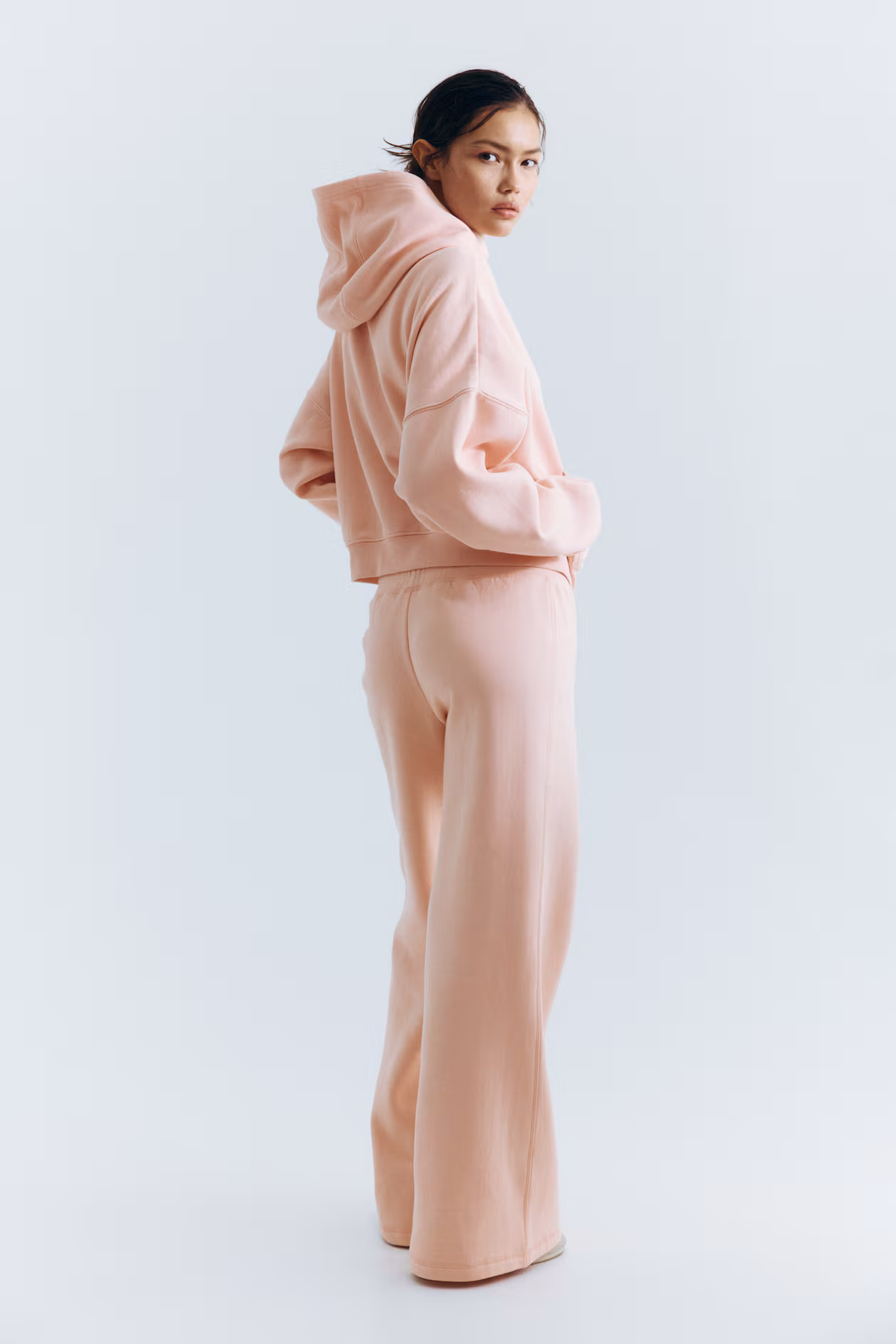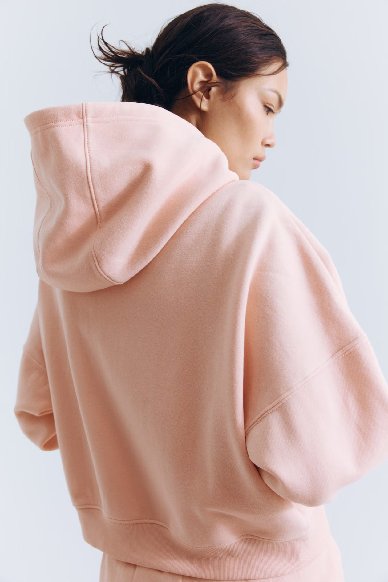 Loose-fit hooded sweatshirt jacket with a soft, brushed inside. Lined hood, zipper at front, and patch front pockets. Dropped shoulders, long sleeves, and ribbing at cuffs and hem.
