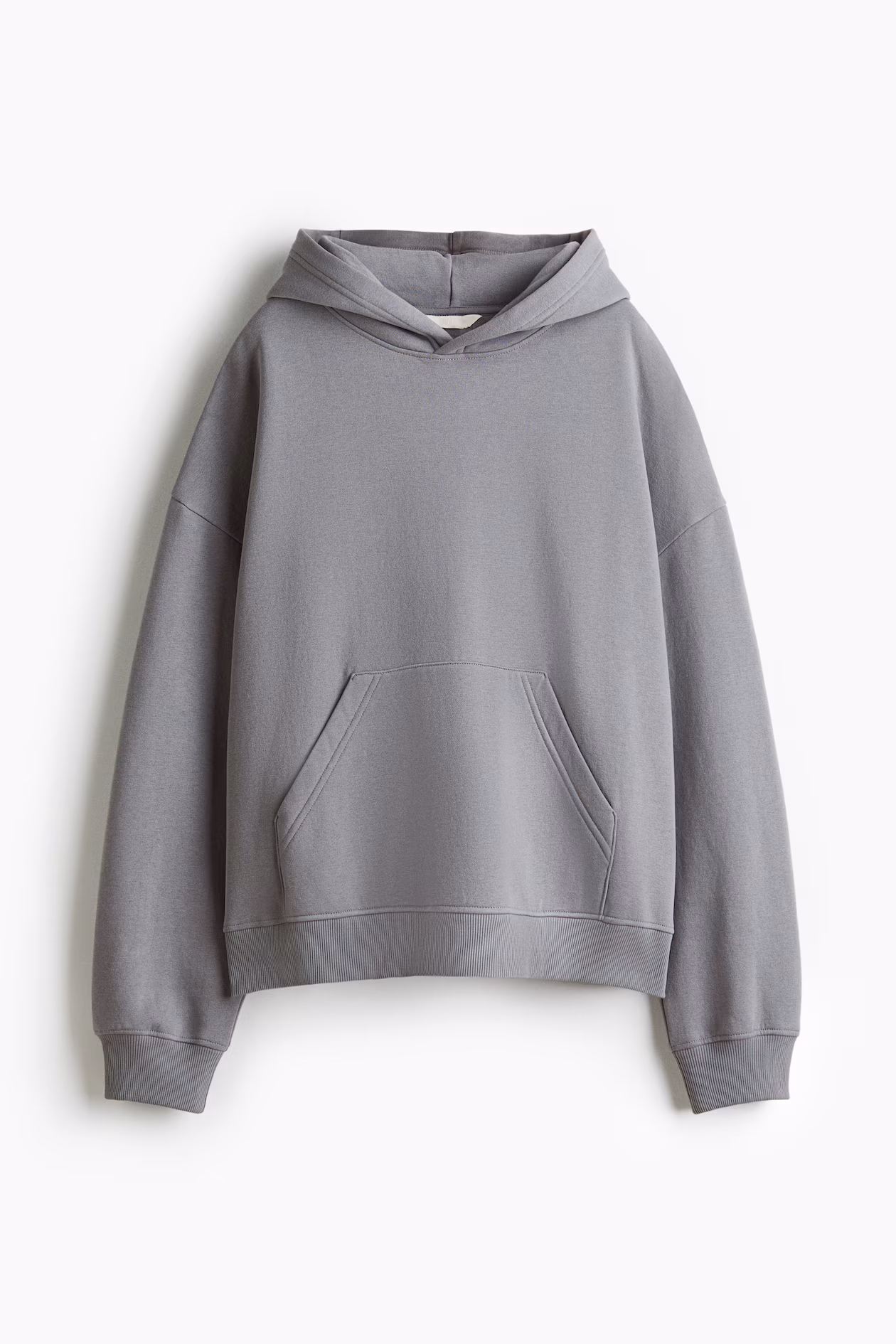 Sweatshirt hoodie with a soft, brushed inside. Double-layered hood, heavily dropped shoulders, and a kangaroo pocket. Ribbing at cuffs and hem.