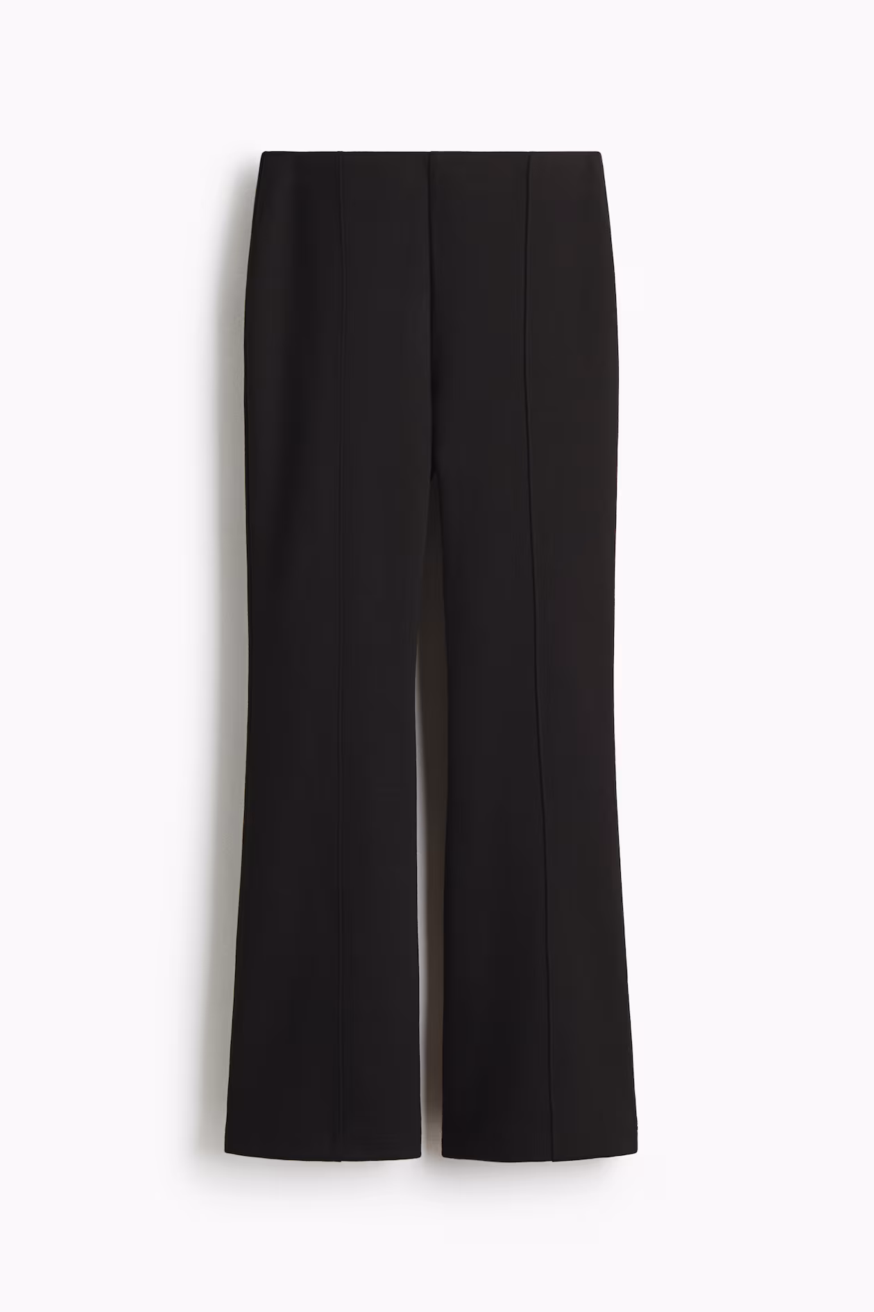 Fitted dress pants in interlock jersey. High waist, elasticized waistband, and straight legs with stitched creases at front.