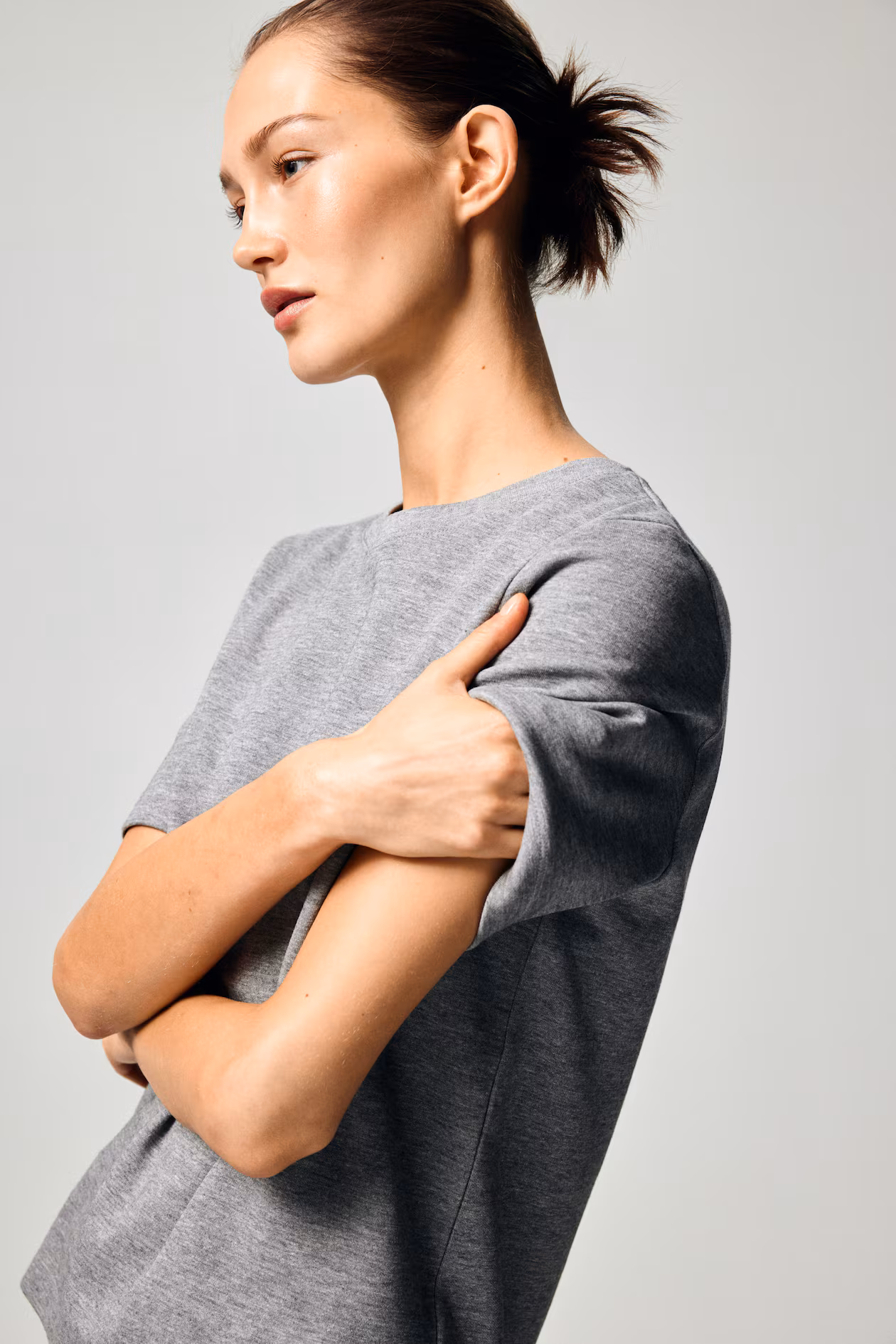 T-shirt in thick interlock jersey. Ribbed round neckline and a straight-cut hem.