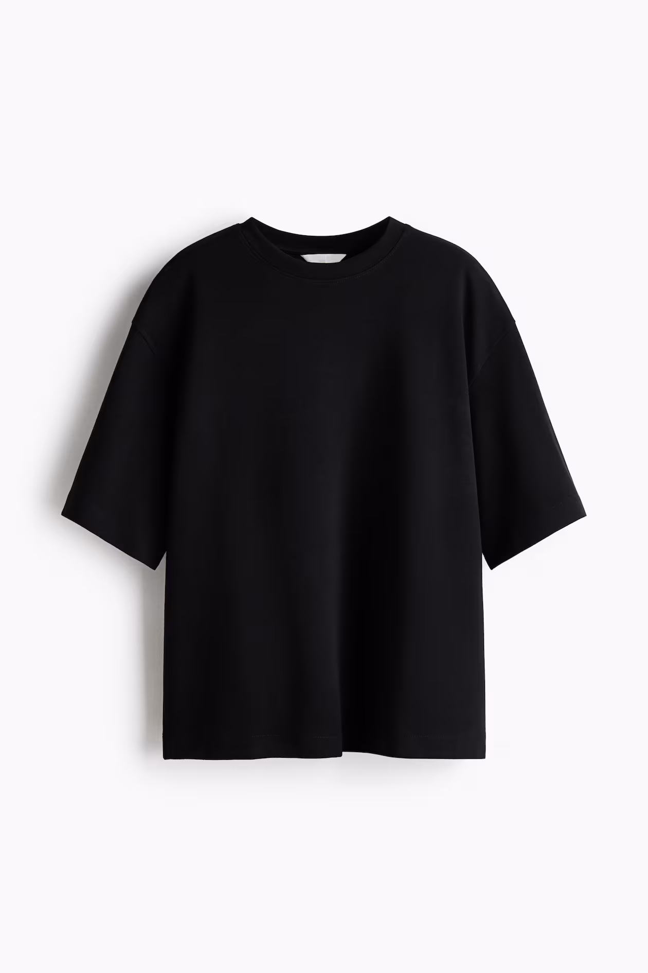 Loose-fit T-shirt in thick interlock jersey. Ribbed round neckline and dropped shoulders.