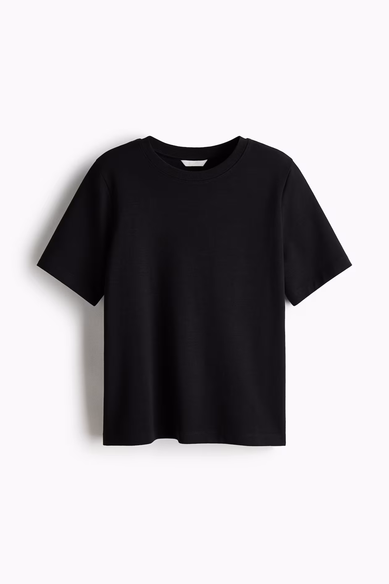 T-shirt in thick interlock jersey. Ribbed round neckline and a straight-cut hem.