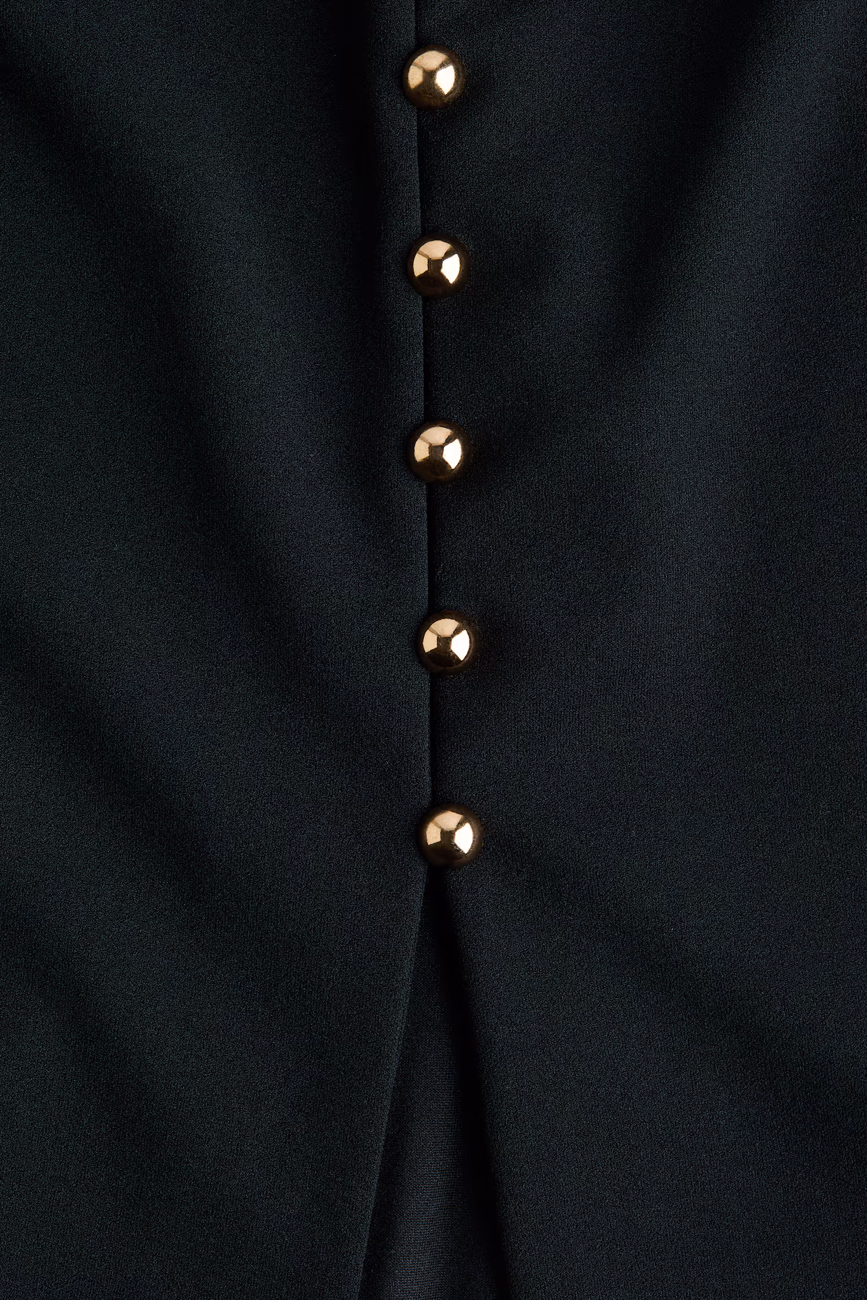 Fitted vest in thick interlock jersey with cap sleeves. Low-cut V-neck, small metal buttons to waist, and a gently flared cut from waist to hem.