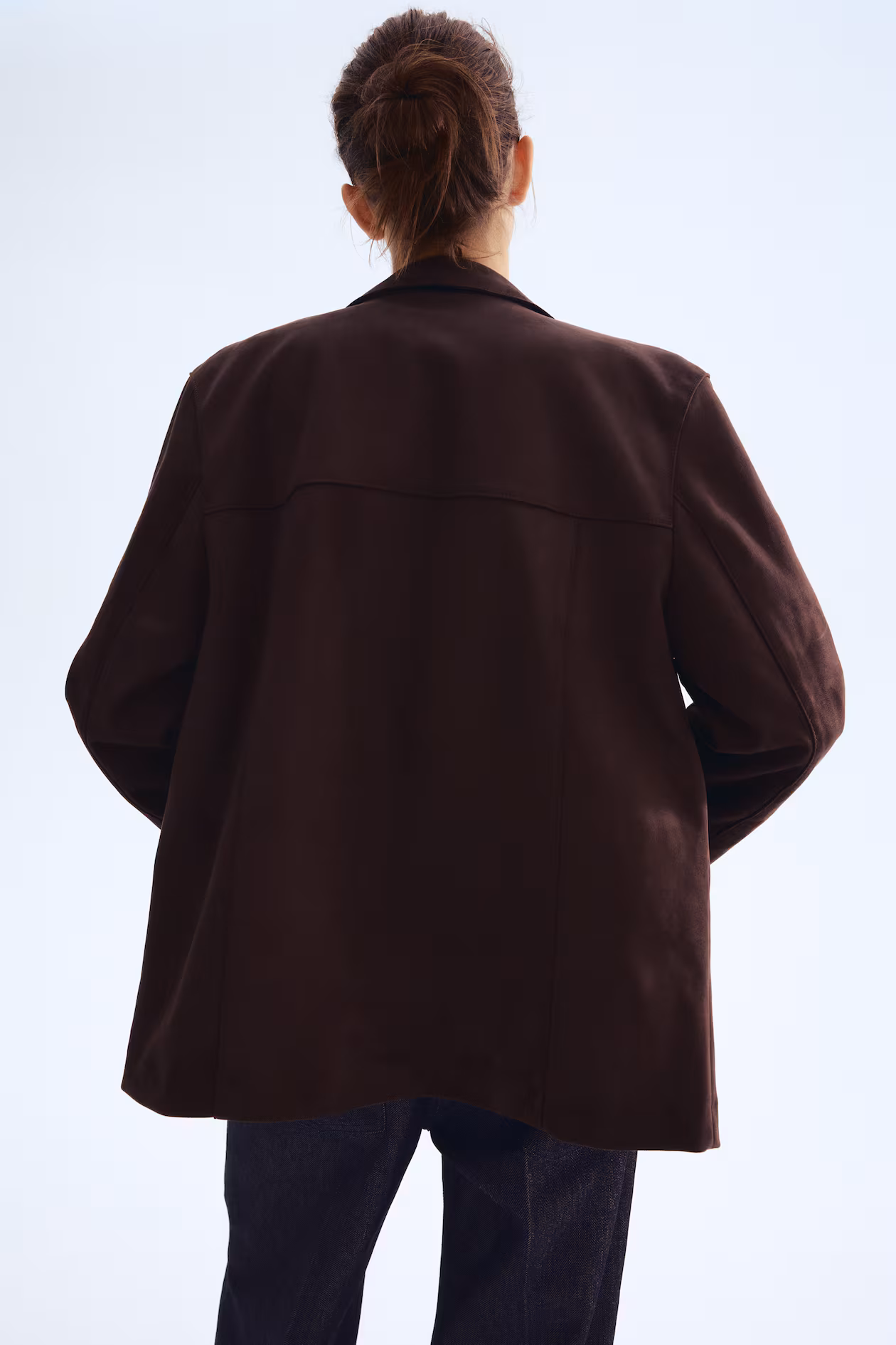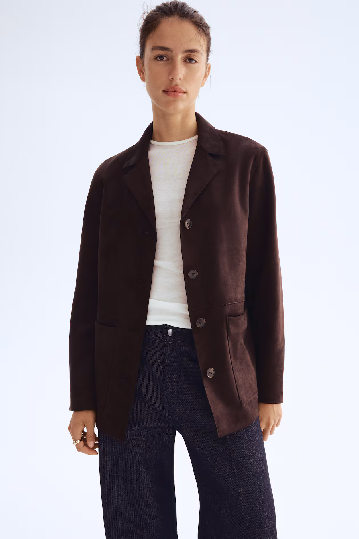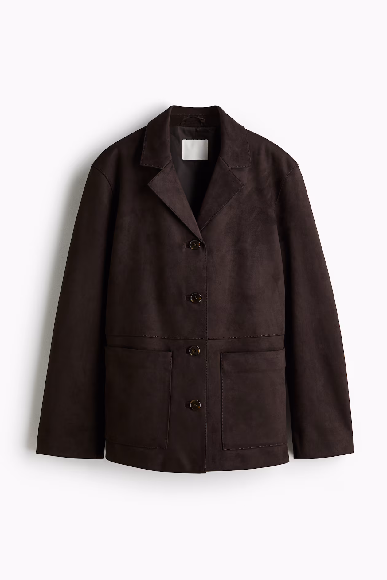 Jacket in woven fabric with a soft, napped finish. Notched lapels, buttons at front, and patch front pockets. Lined.