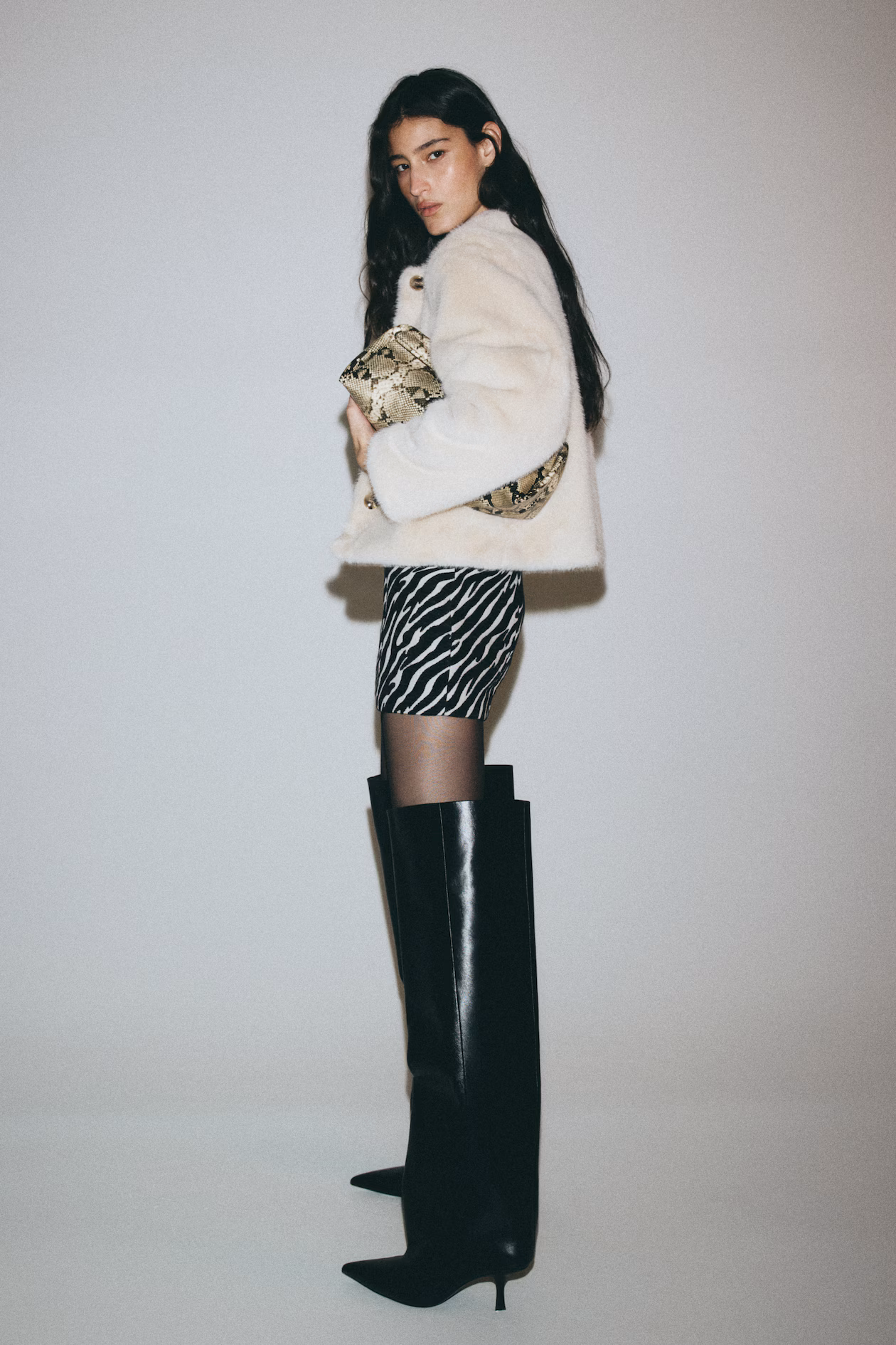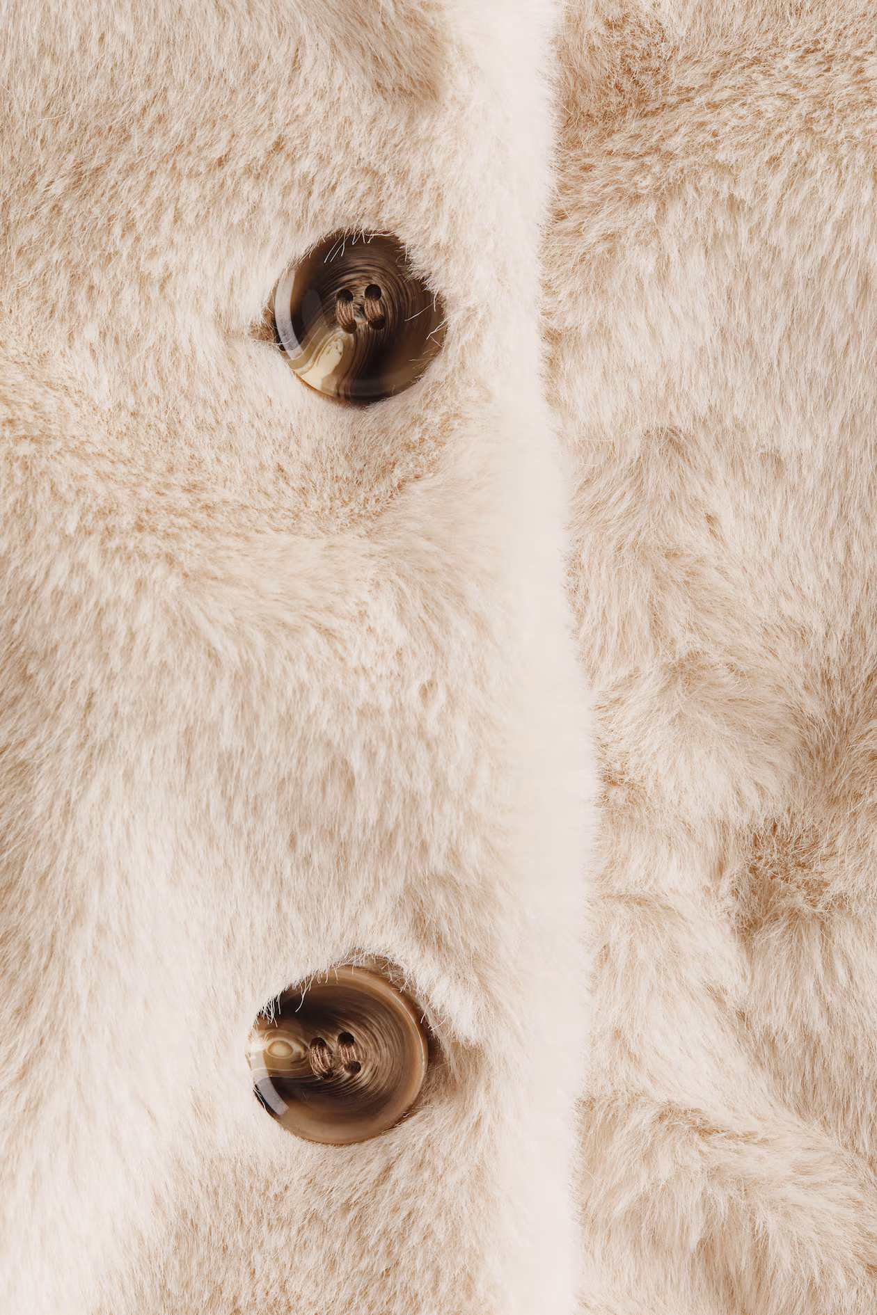 Jacket in soft, fluffy fabric. Round neckline, buttons at front, and discreet side pockets. Lined.