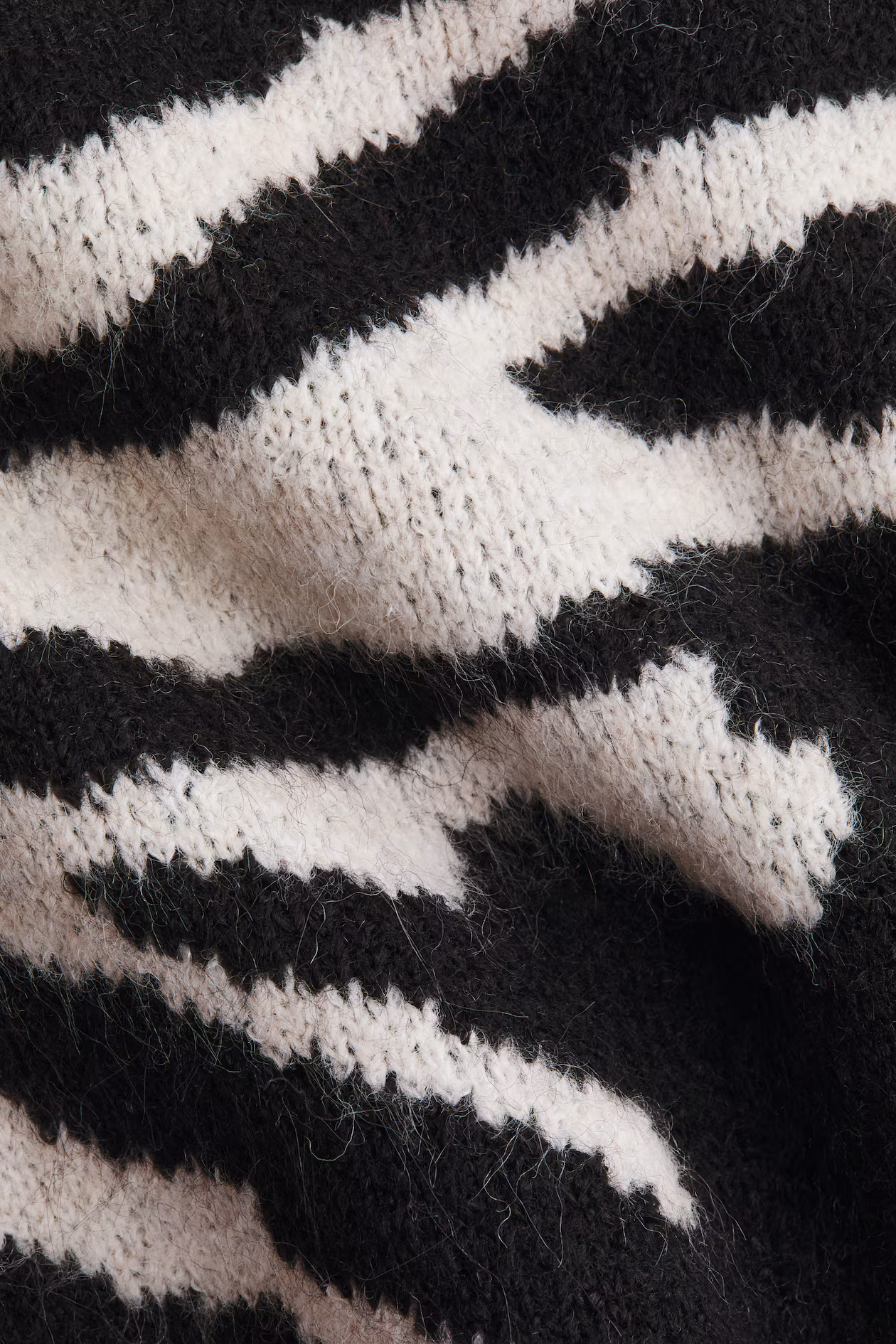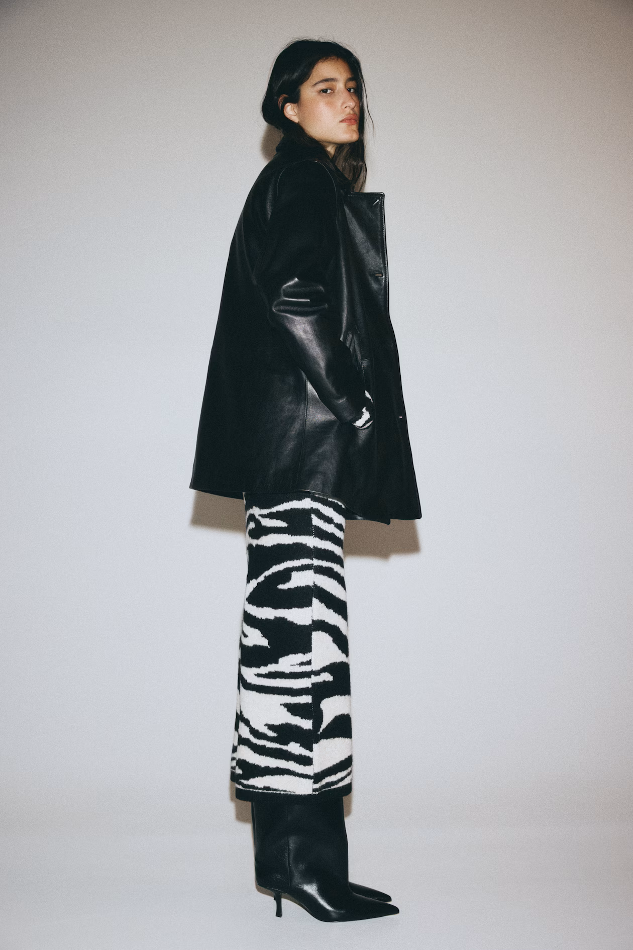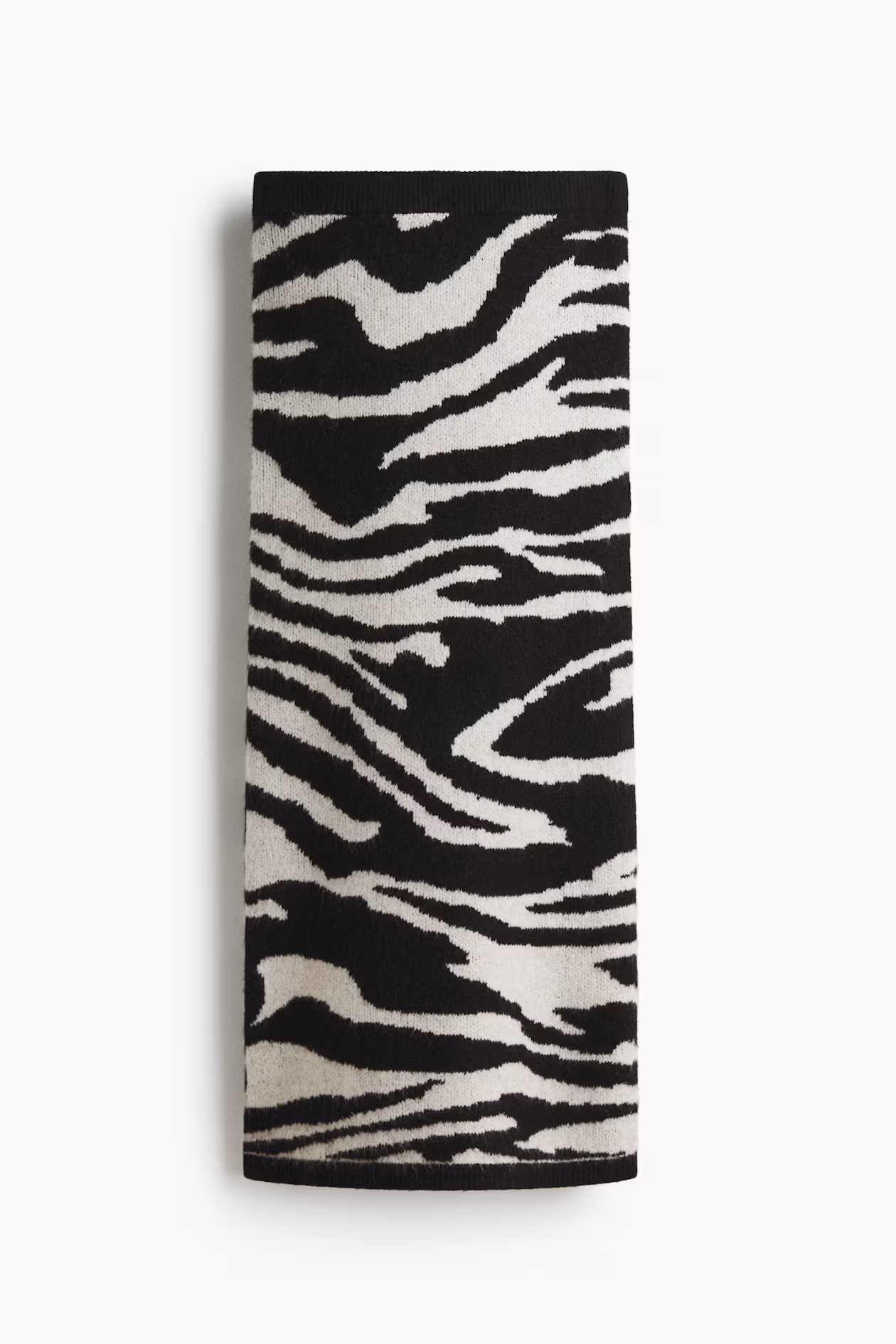 Fitted, calf-length skirt in a soft knit with a jacquard pattern. Regular waist, ribbed waistband with covered elastic, and narrow ribbing at hem.