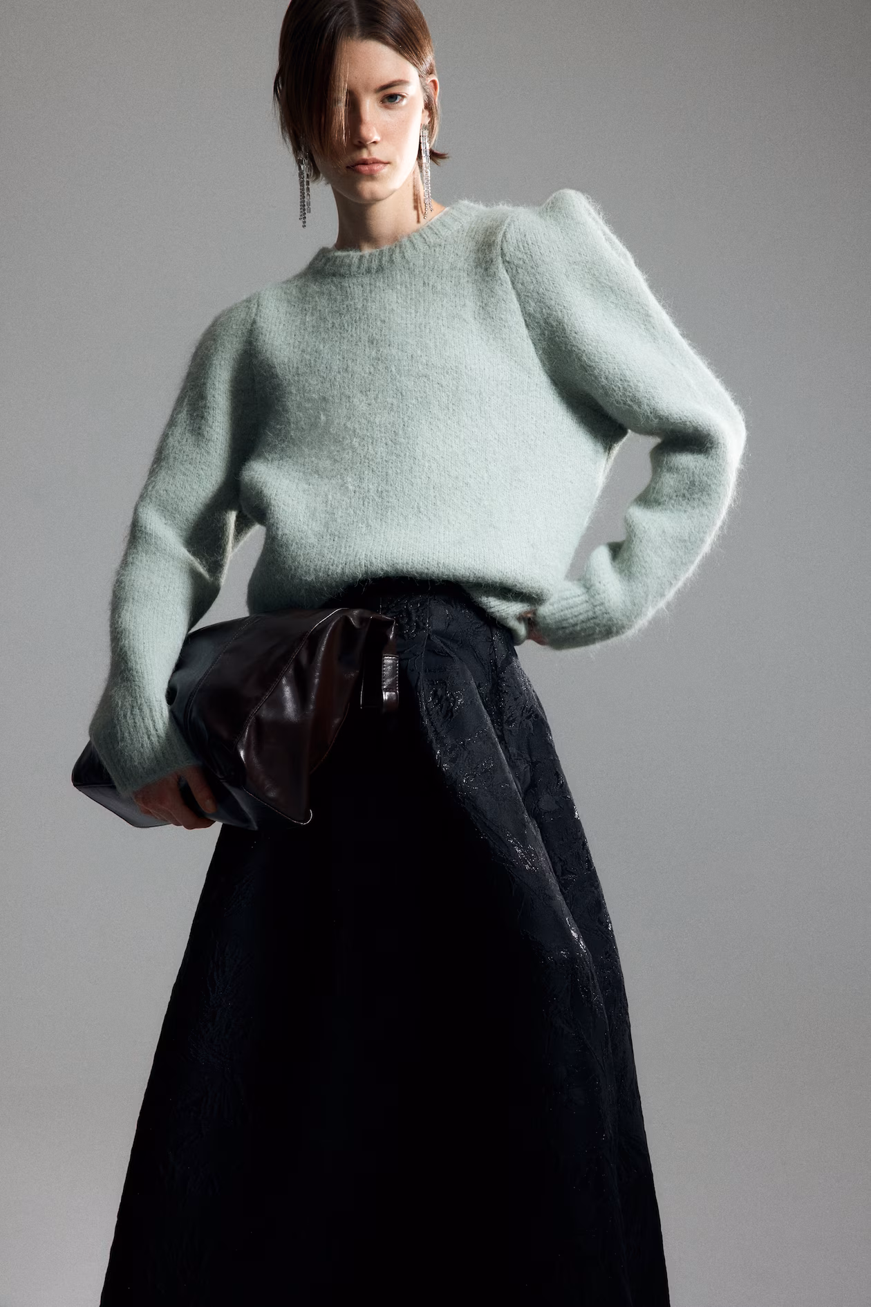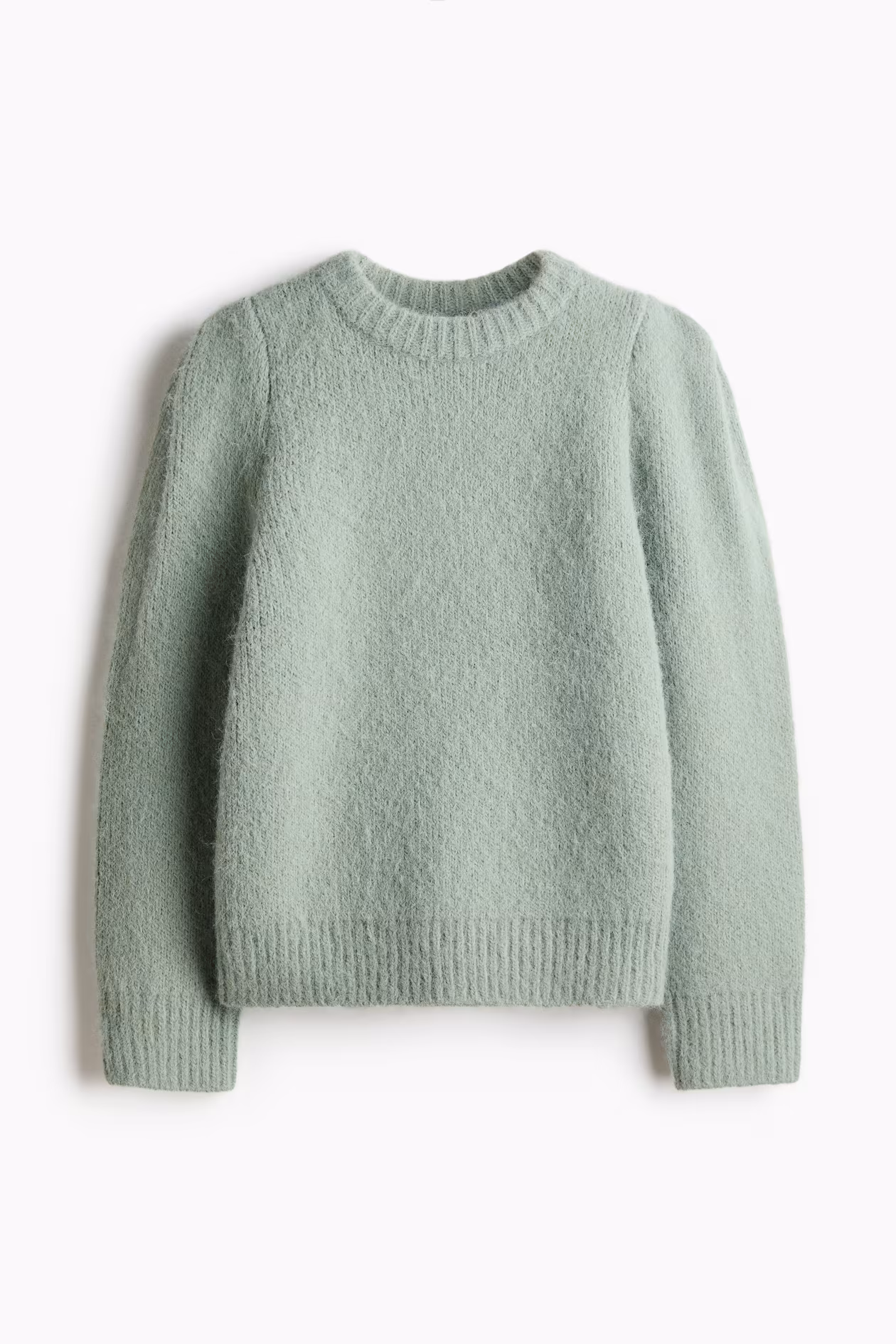 Soft, jacquard-knit sweater with wool content. Round neckline and ribbing at neckline, cuffs, and hem.
