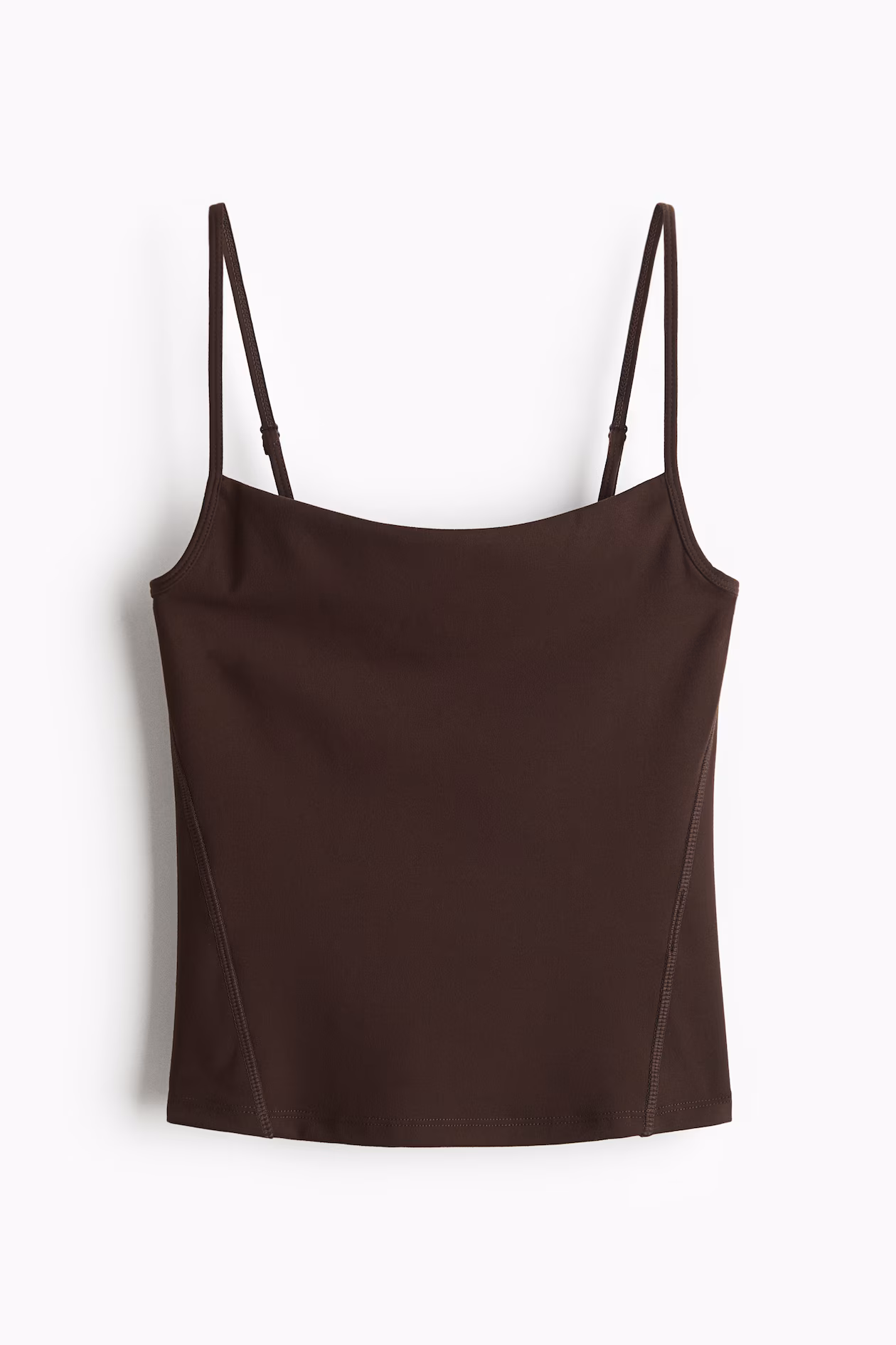Fitted top in stretch jersey. Narrow, adjustable shoulder straps, straight neckline, and gently forward-facing side seams.