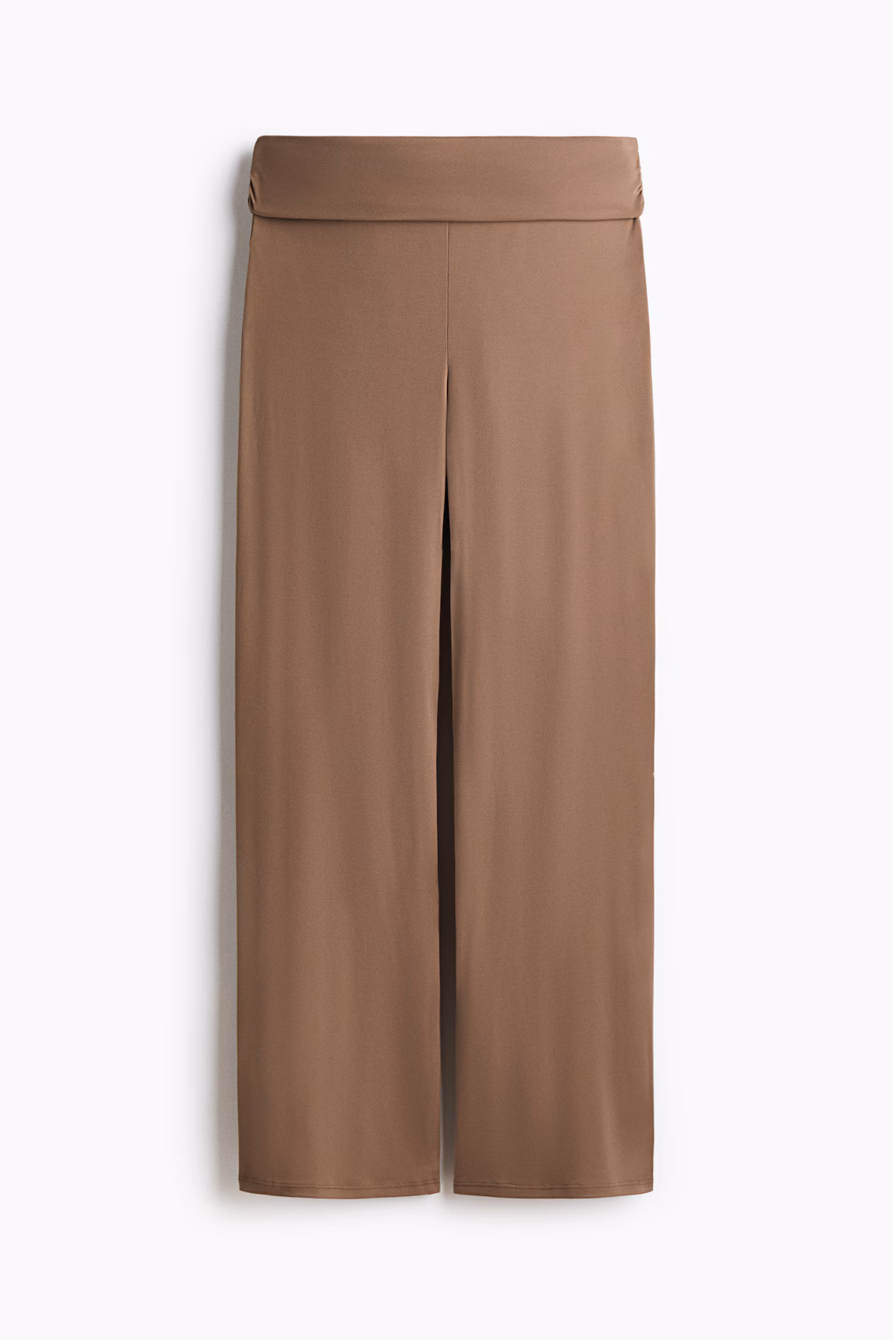 Fitted, straight-leg pants in soft jersey. Low waist, double-layered waistband, and gathered seams at sides.
