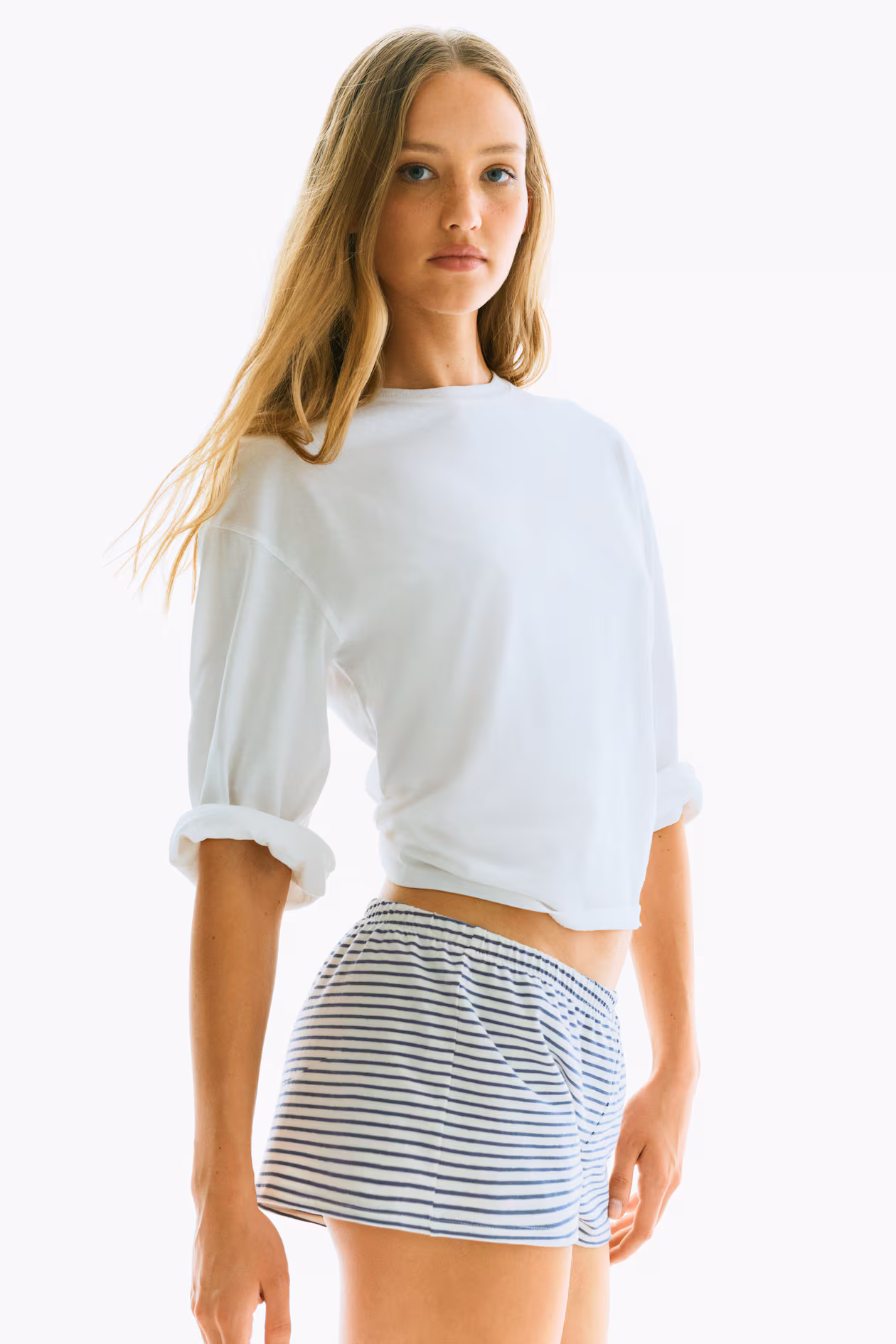 Shorts in soft jersey with covered elastic at waistband.