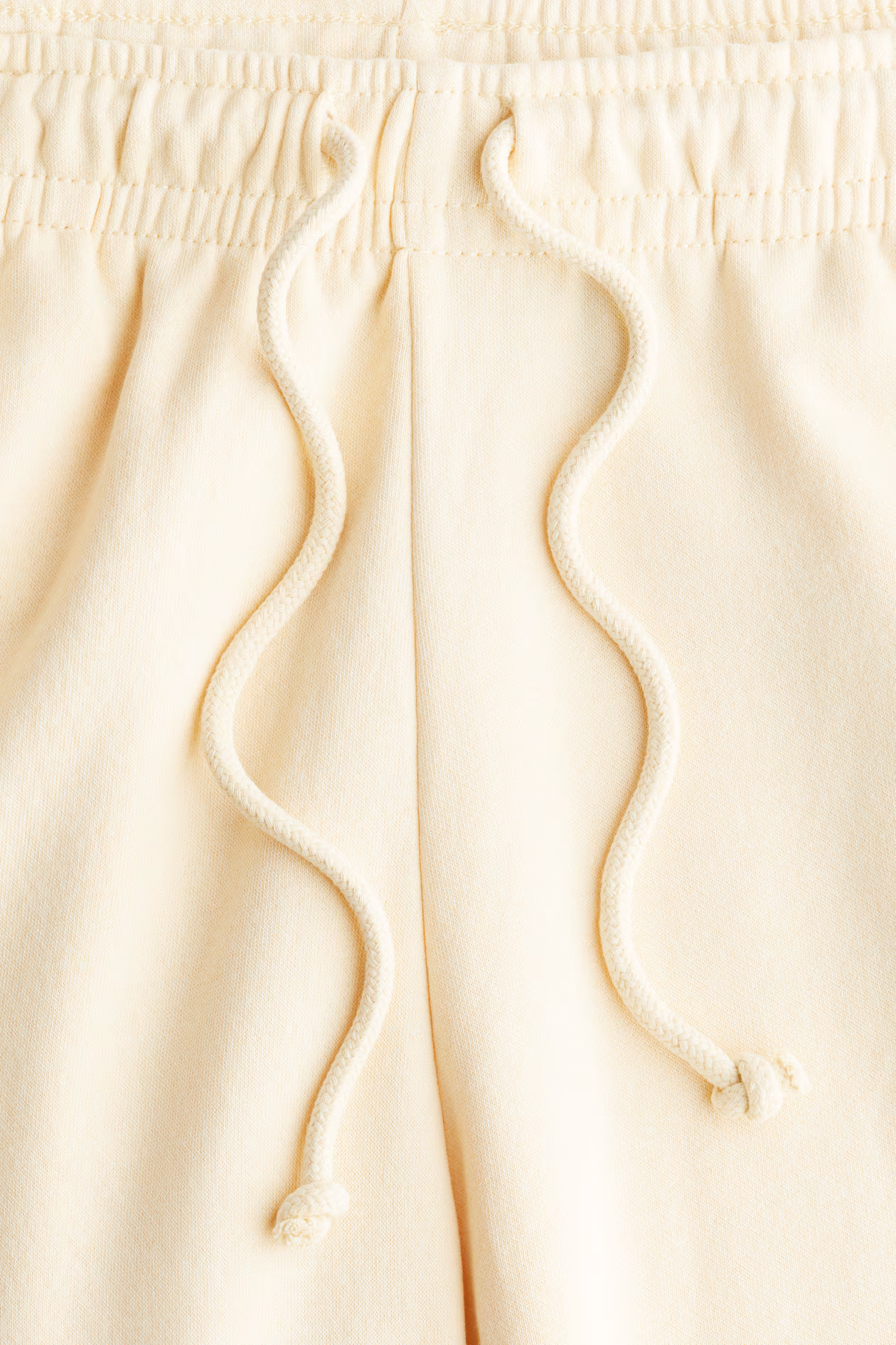 Sweatpant joggers with a soft, brushed inside. Smocked elastic and a drawstring at waistband, discreet side pockets, and covered elastic at hems.