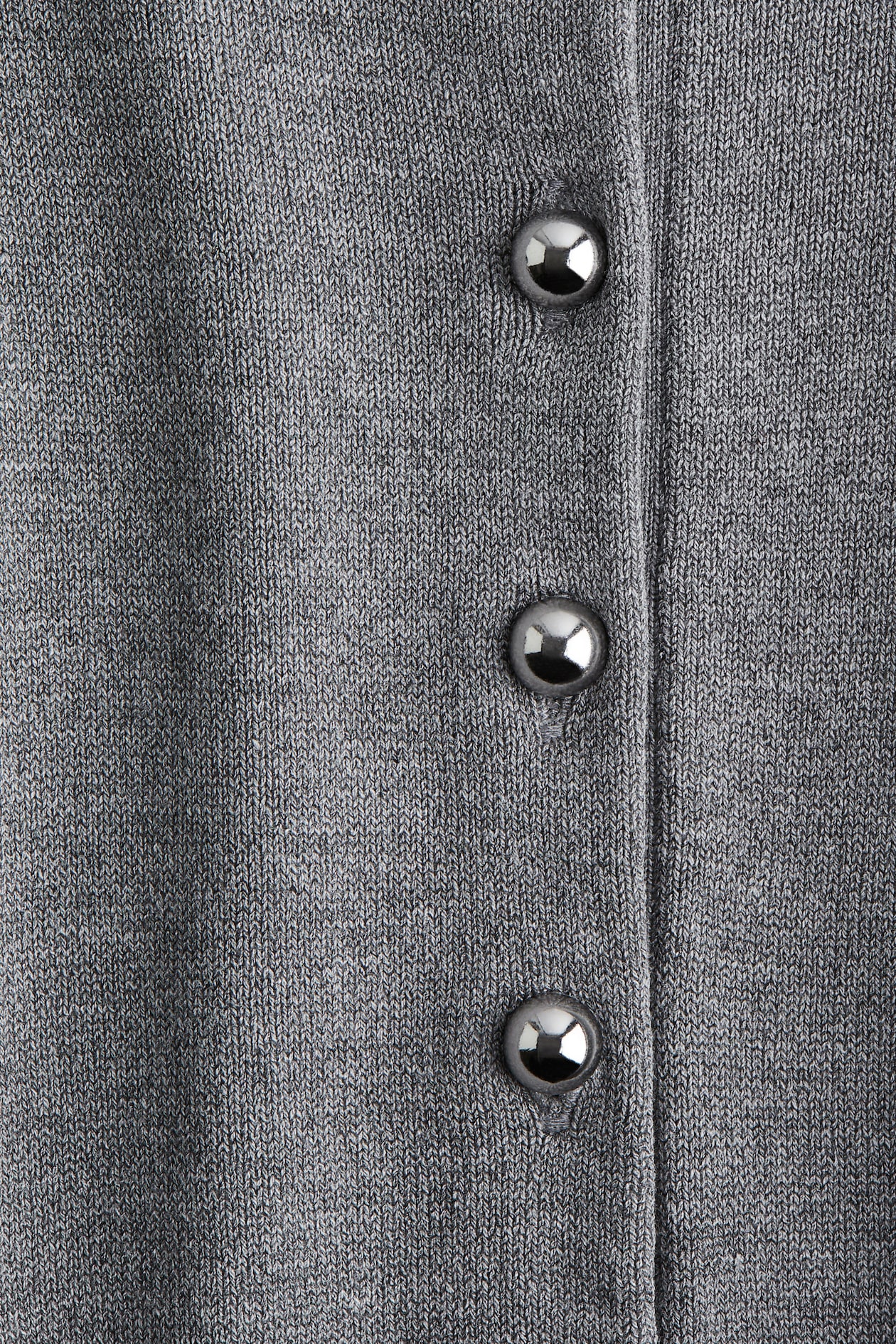 Soft, knit cardigan with a round neckline, gold-colored metal buttons at front, and long sleeves. Ribbing at neckline, cuffs, and hem.