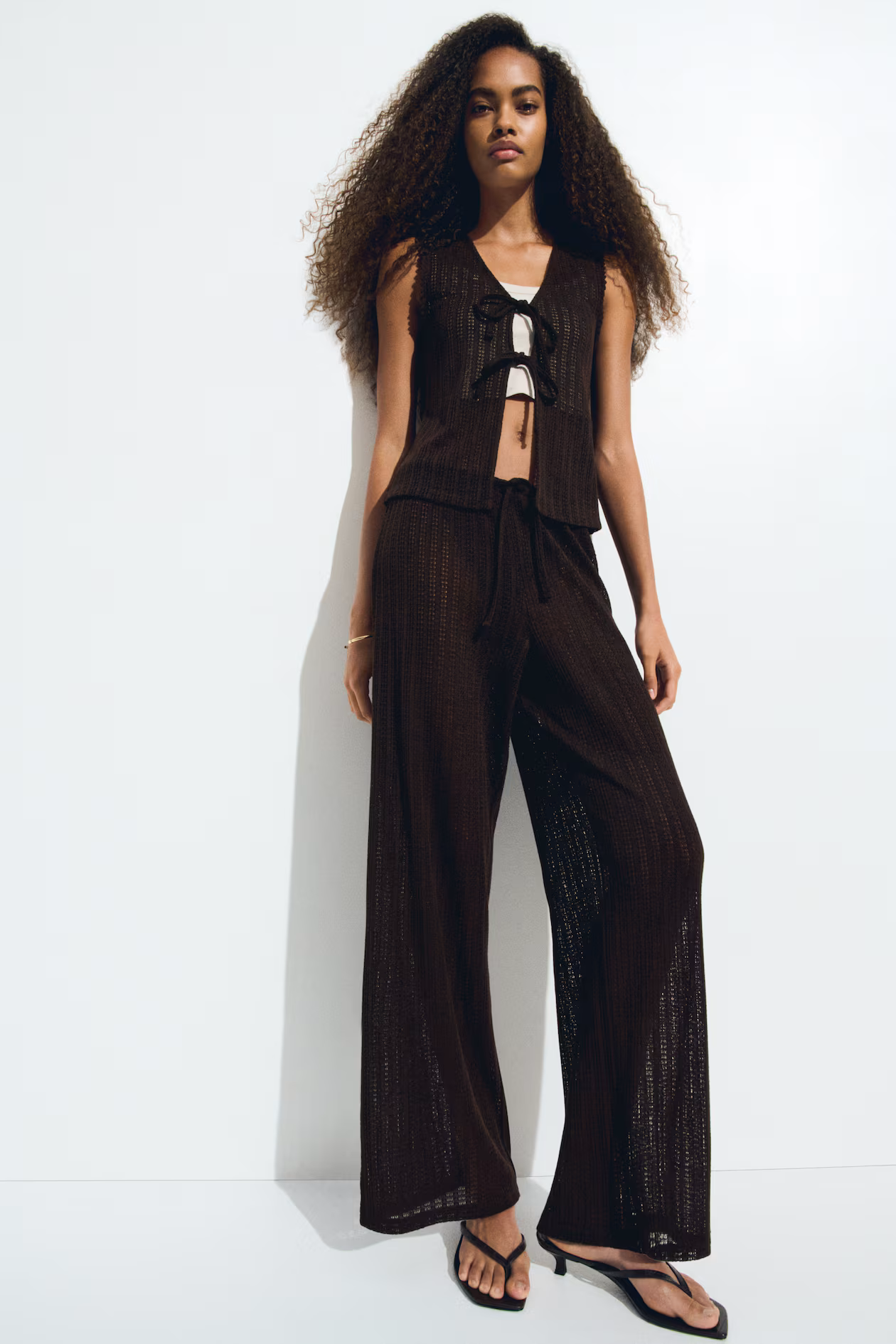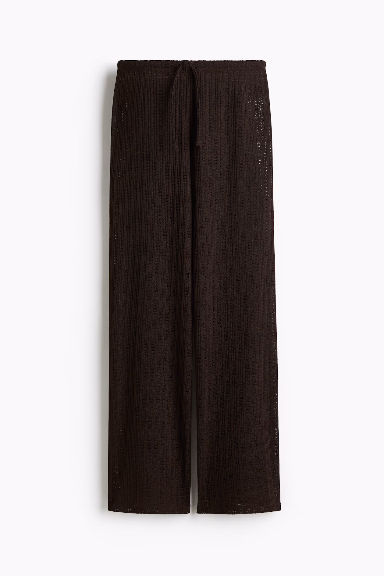 Pants in a soft, fine knit. Elasticized, drawstring waistband and wide legs.