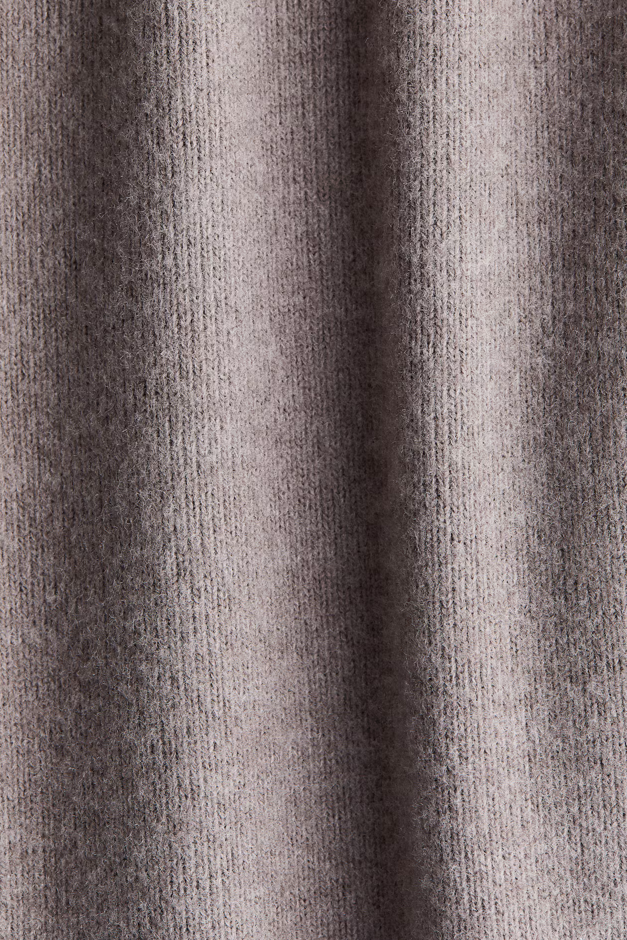 Long-sleeved mini dress in a soft, fine knit with visible, vertical seams at front. Round neckline, shaping darts at back, and a flared skirt.