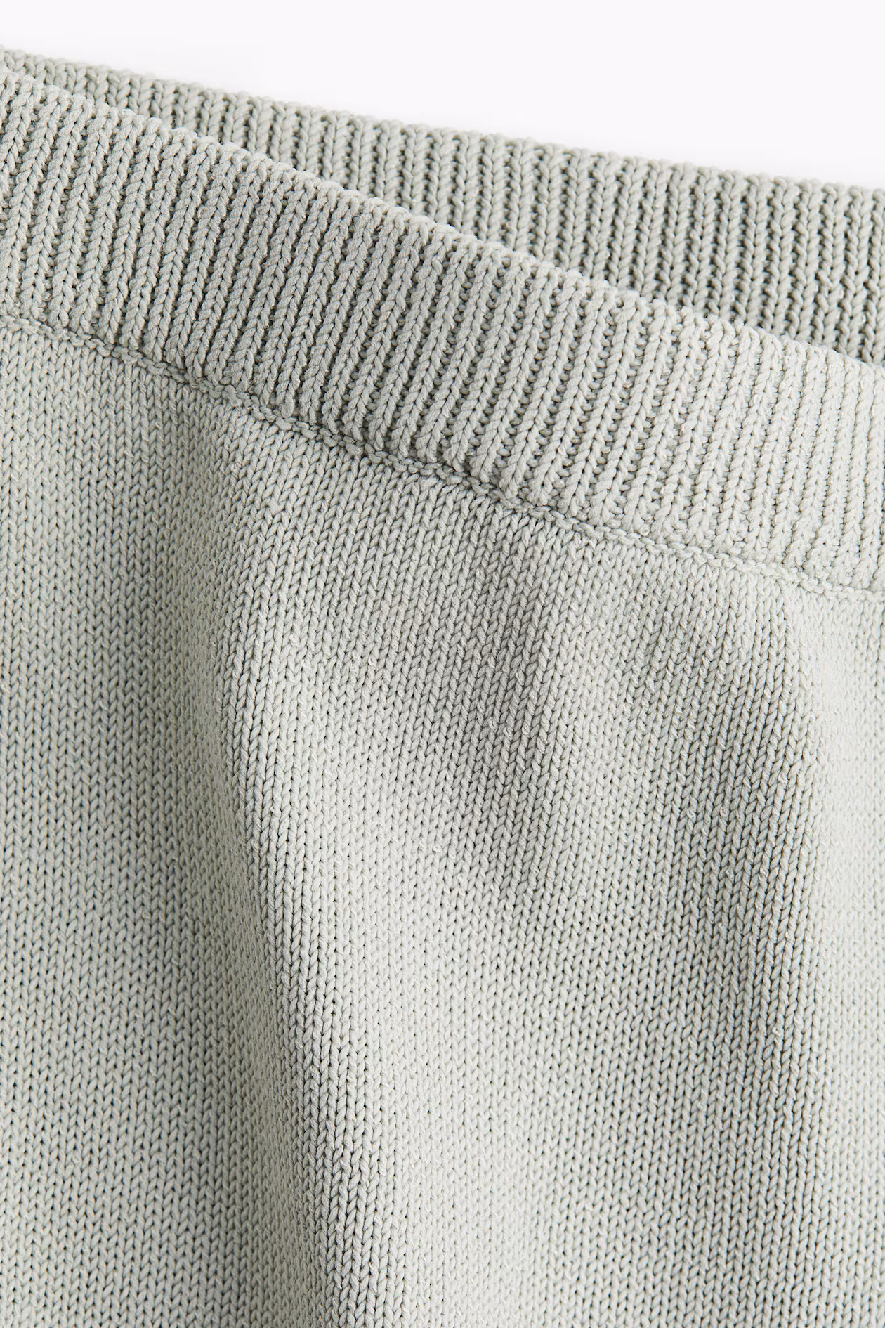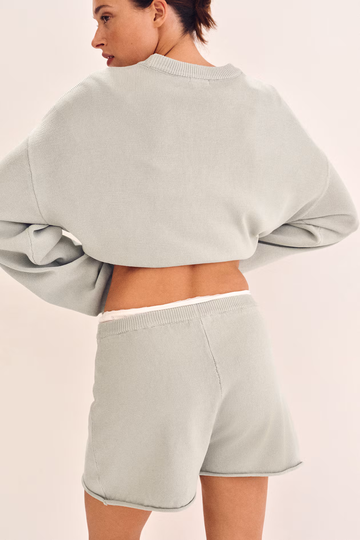 Soft, knit shorts with ribbed elastic at waistband and rolled edges at hem.