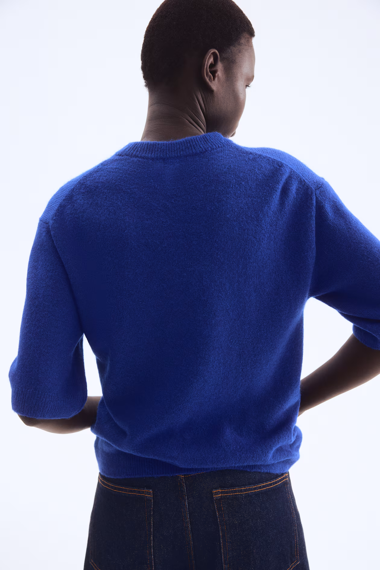 Loose-fit T-shirt in a soft knit. Dropped shoulders, elbow-length sleeves, and ribbing at neckline, cuffs, and hem.