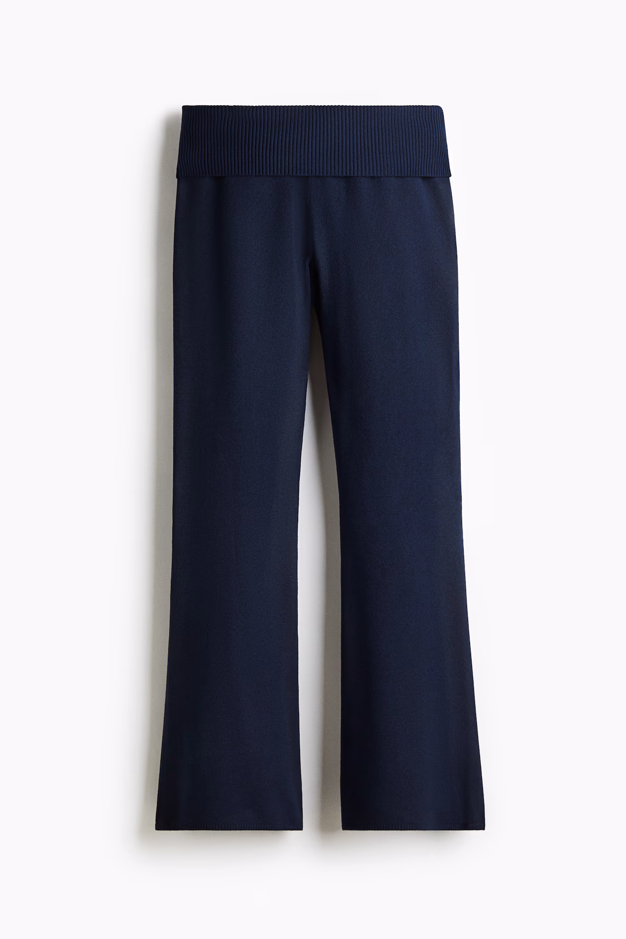 Yoga pants in a soft knit with a regular waist. Concealed elastic and a wide, rib-knit foldover at waistband. Gently flared legs.