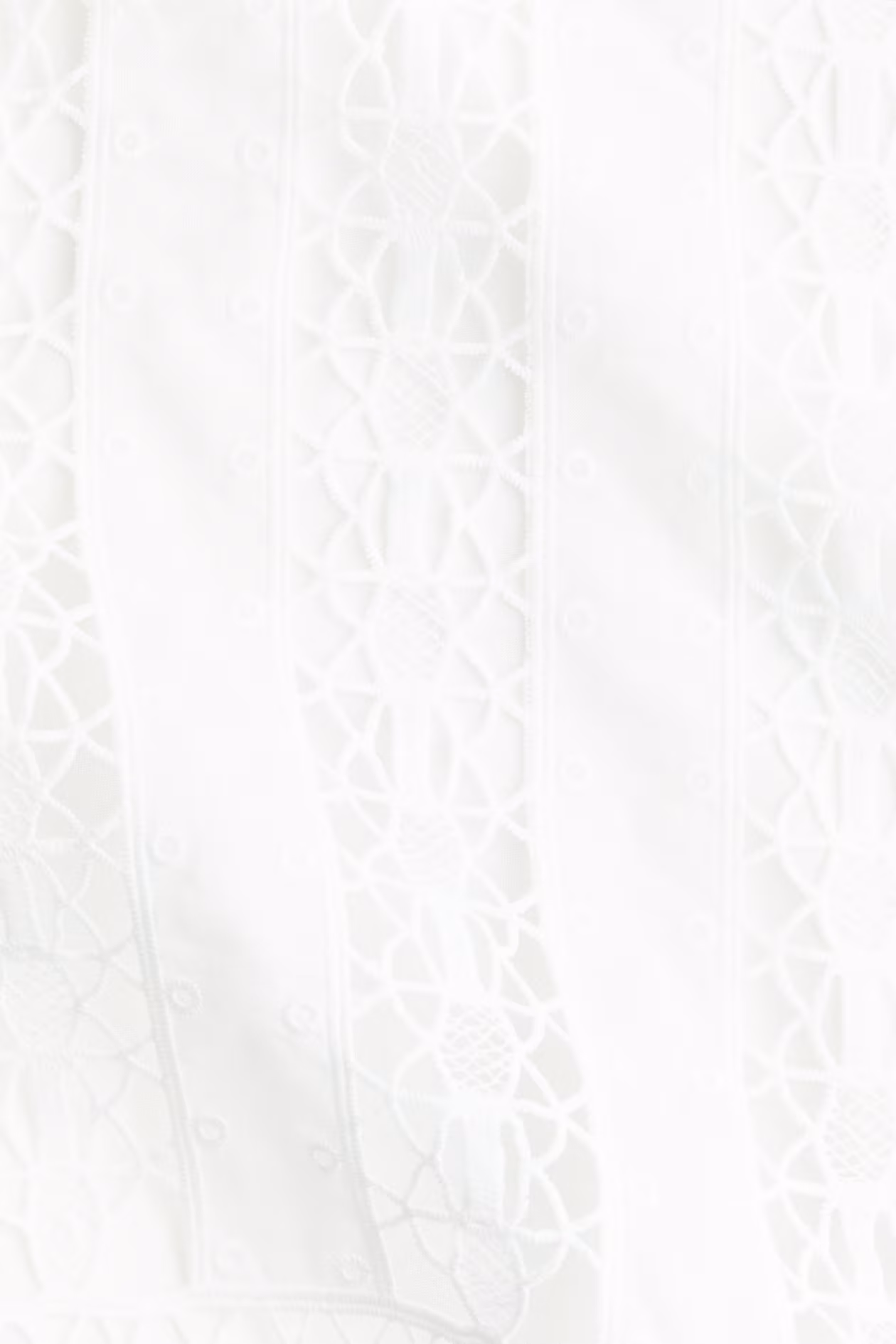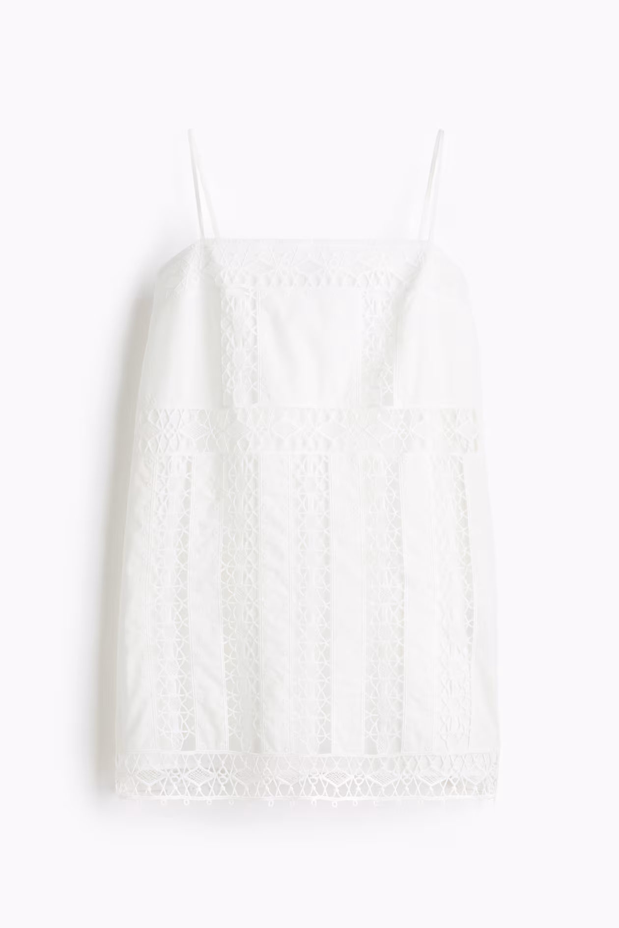 Short dress in woven cotton with decorative lace insets. Adjustable, extra-narrow shoulder straps, straight neckline, and a concealed zipper at back with hook-and-eye fastener. Lined.