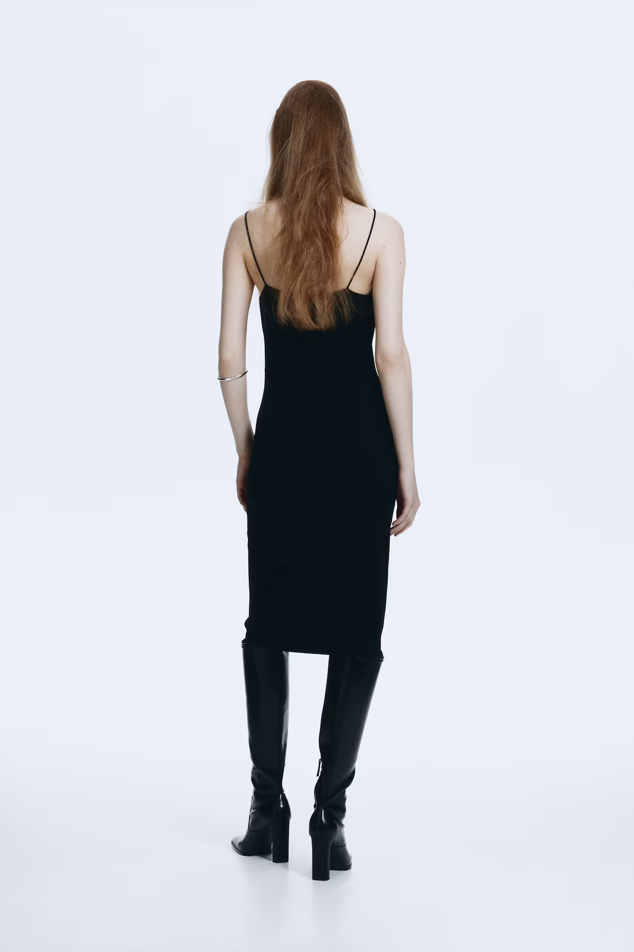 Fitted, knee-length dress in a fine-knit viscose blend. Narrow shoulder straps and a lace-trimmed V-neck.