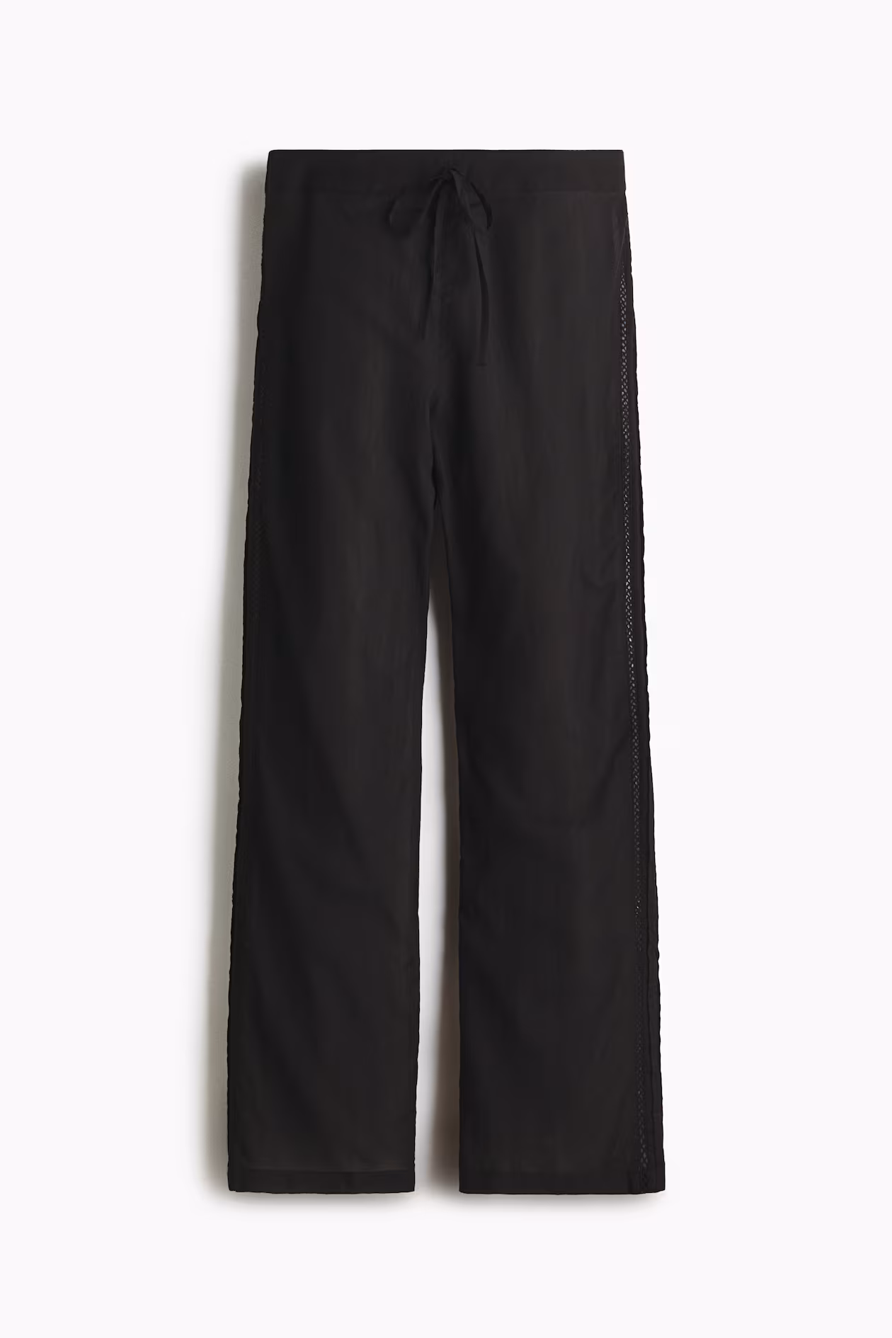 Pajama pants in a lightweight, woven cotton and viscose blend. Regular waist, decorative drawstring at front of waistband, and smocked elastic at back. Straight legs with lace-trimmed stitched creases at sides.