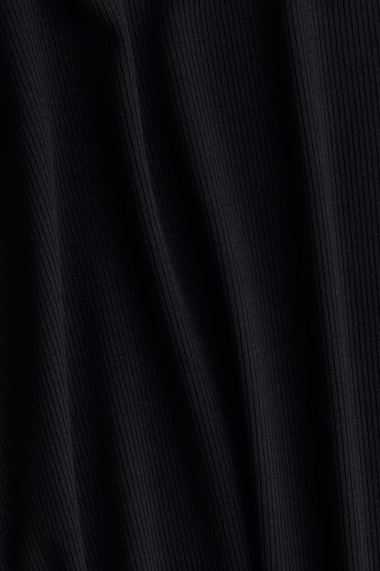 Short, fitted T-shirt in narrow-ribbed viscose jersey. Narrow trim at neckline and delicate lace trim at cuffs.