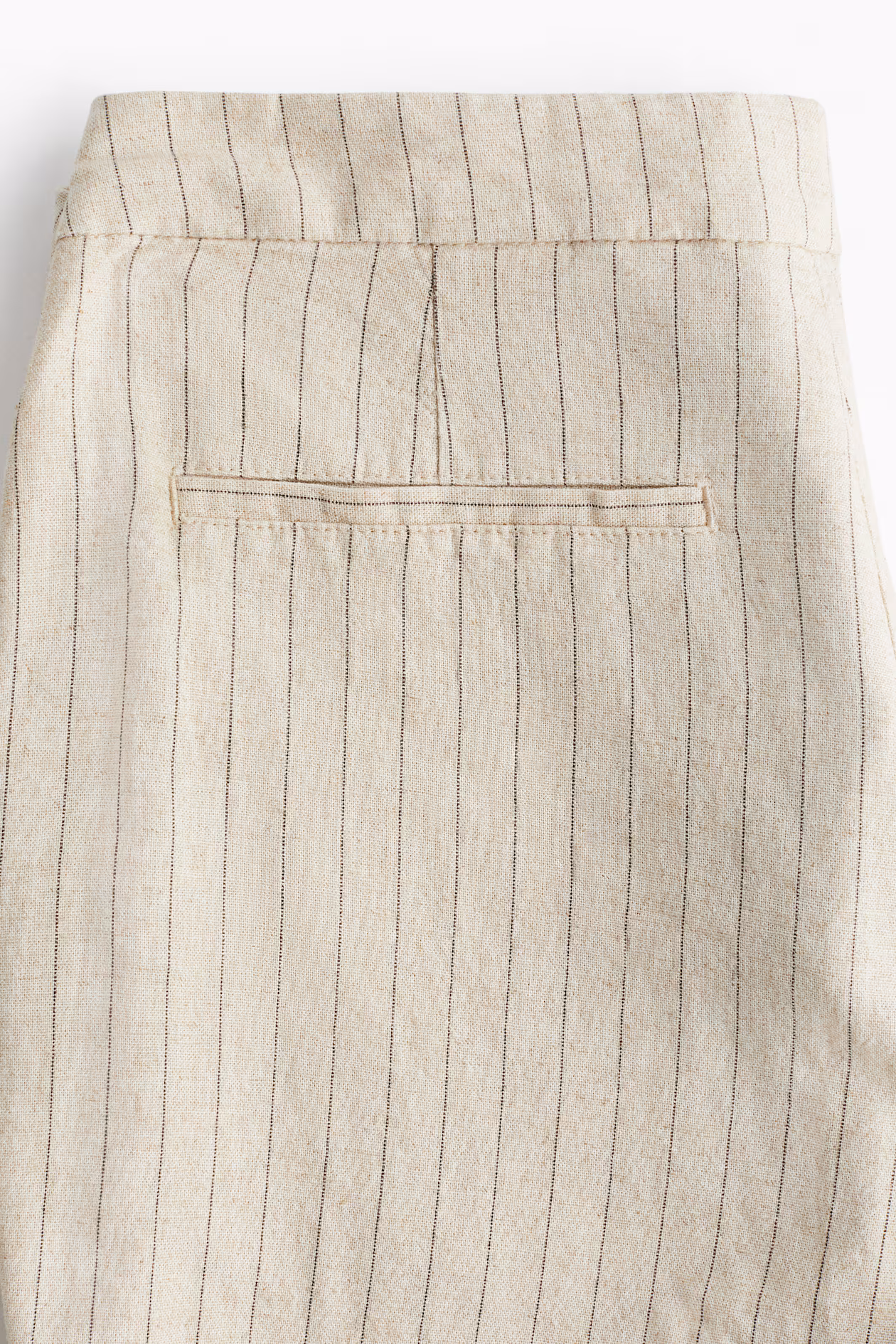 Pants in an airy, woven linen and viscose blend. Regular waist, zip fly with button, diagonal side pockets, and mock welt back pockets. Flared hems.