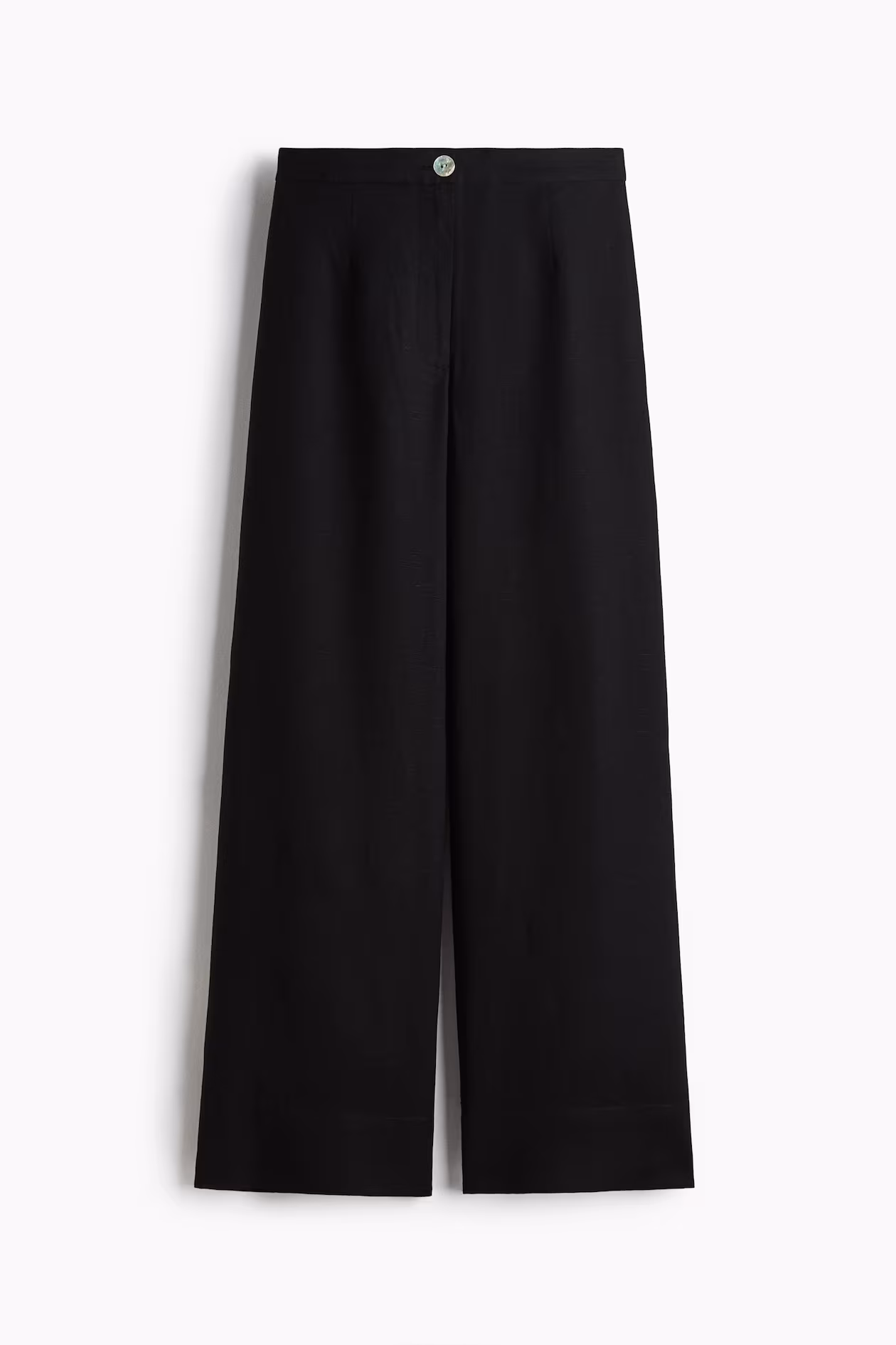 Tailored pants in an airy, woven linen and viscose blend. High waist, zip fly with pearlescent button, and darts at front and back. Wide legs.