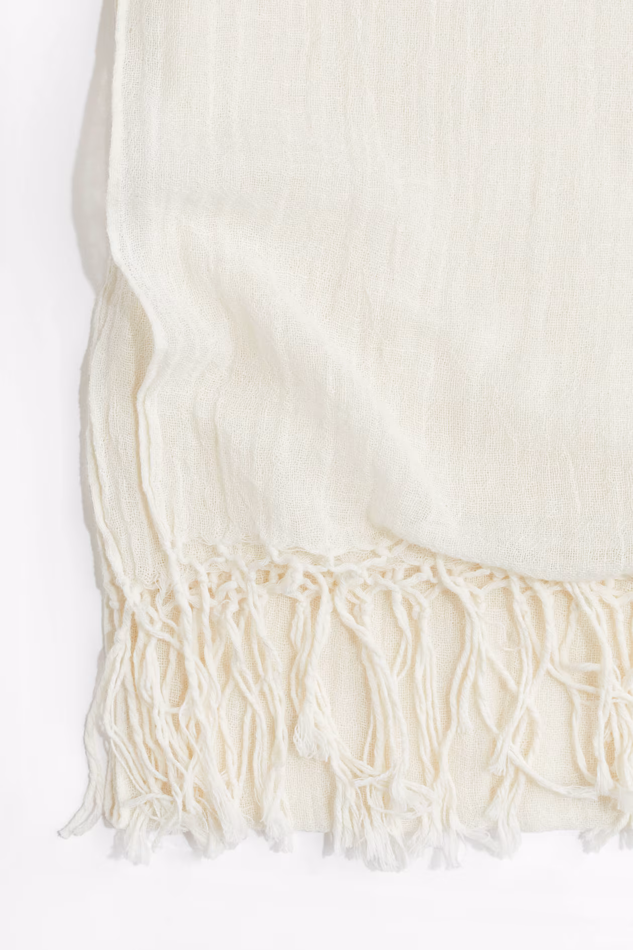 Shawl in an airy, woven linen and cotton blend. Fringe at short sides.