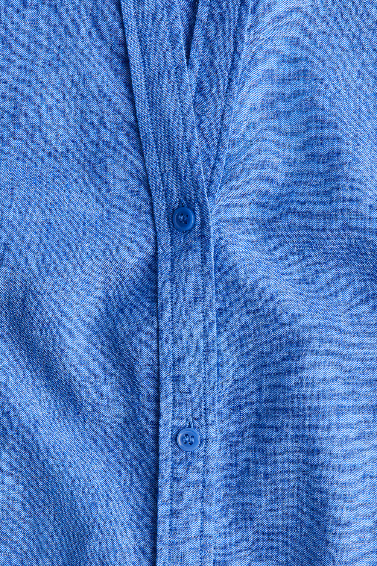 Loose-fit, knee-length dress in an airy, woven cotton and linen blend. Open collar, buttons at front, yoke at back with box pleat, and an extra-narrow, removable tie belt at waist. Long sleeves with a sleeve placket and button at cuffs. Rounded hem with side vents. Unlined.