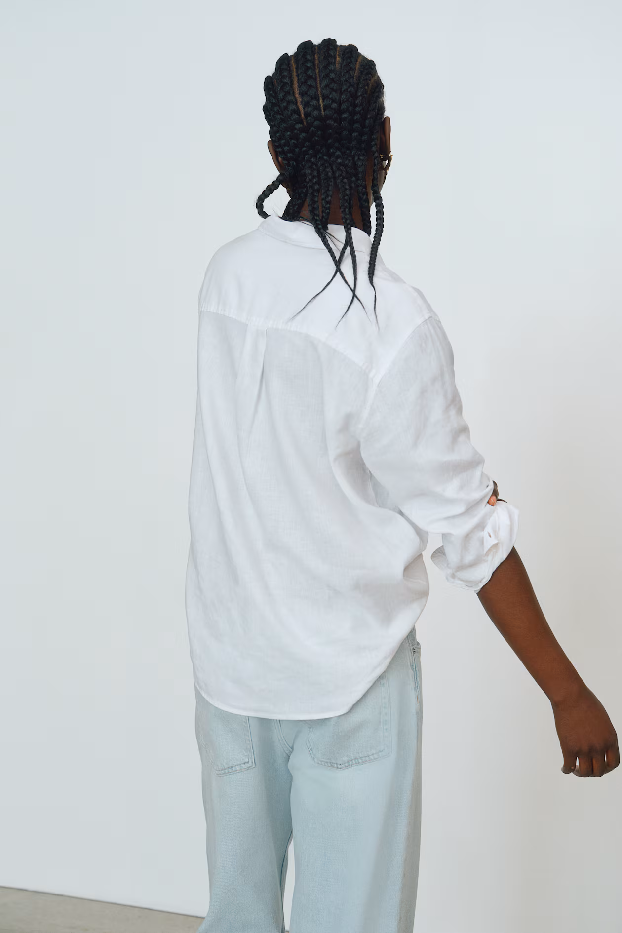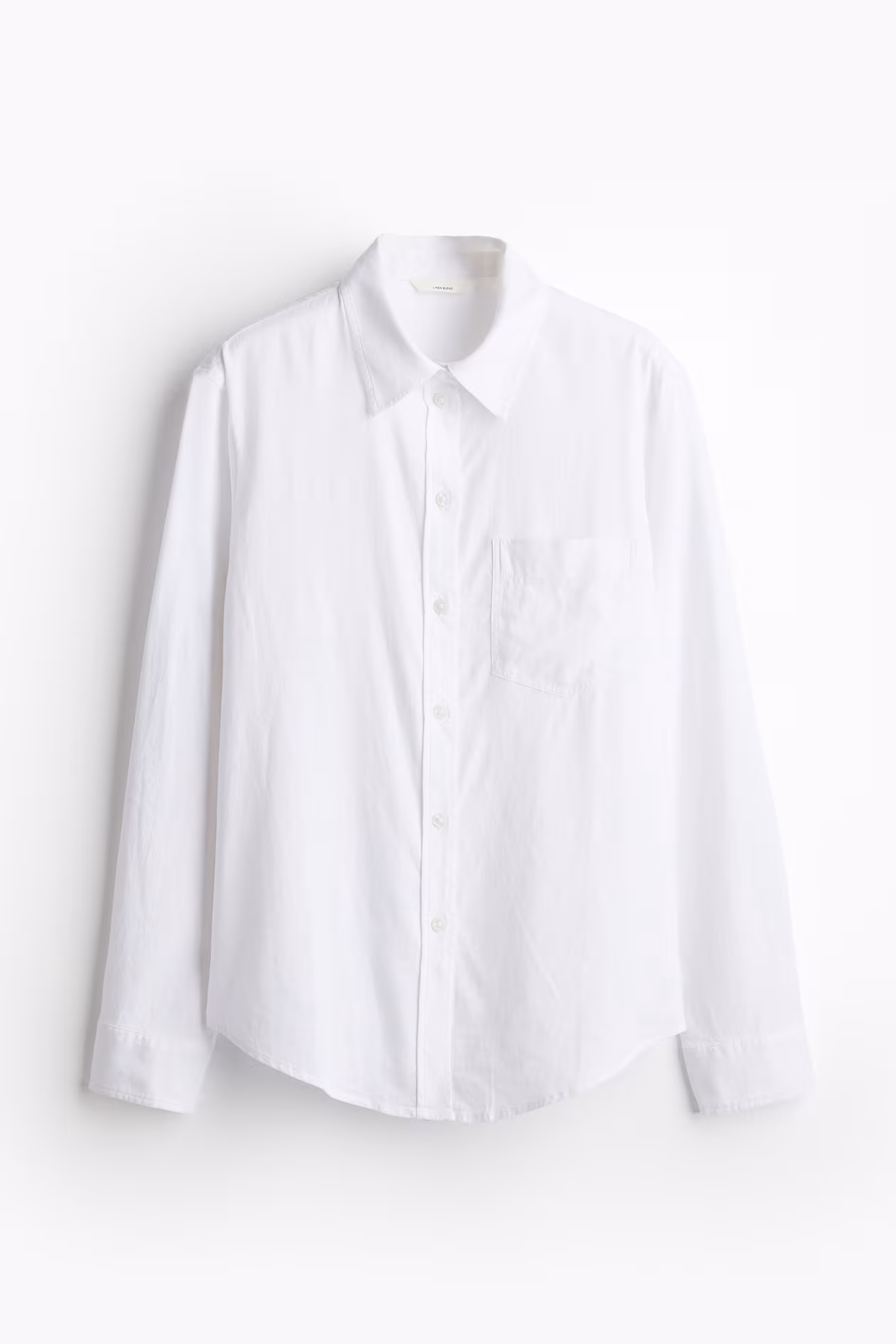 Shirt in an airy, woven linen and viscose blend. Collar, buttons at front, an open chest pocket, and a double-layered yoke at back with box pleat. Long sleeves with button at cuffs. Rounded hem.