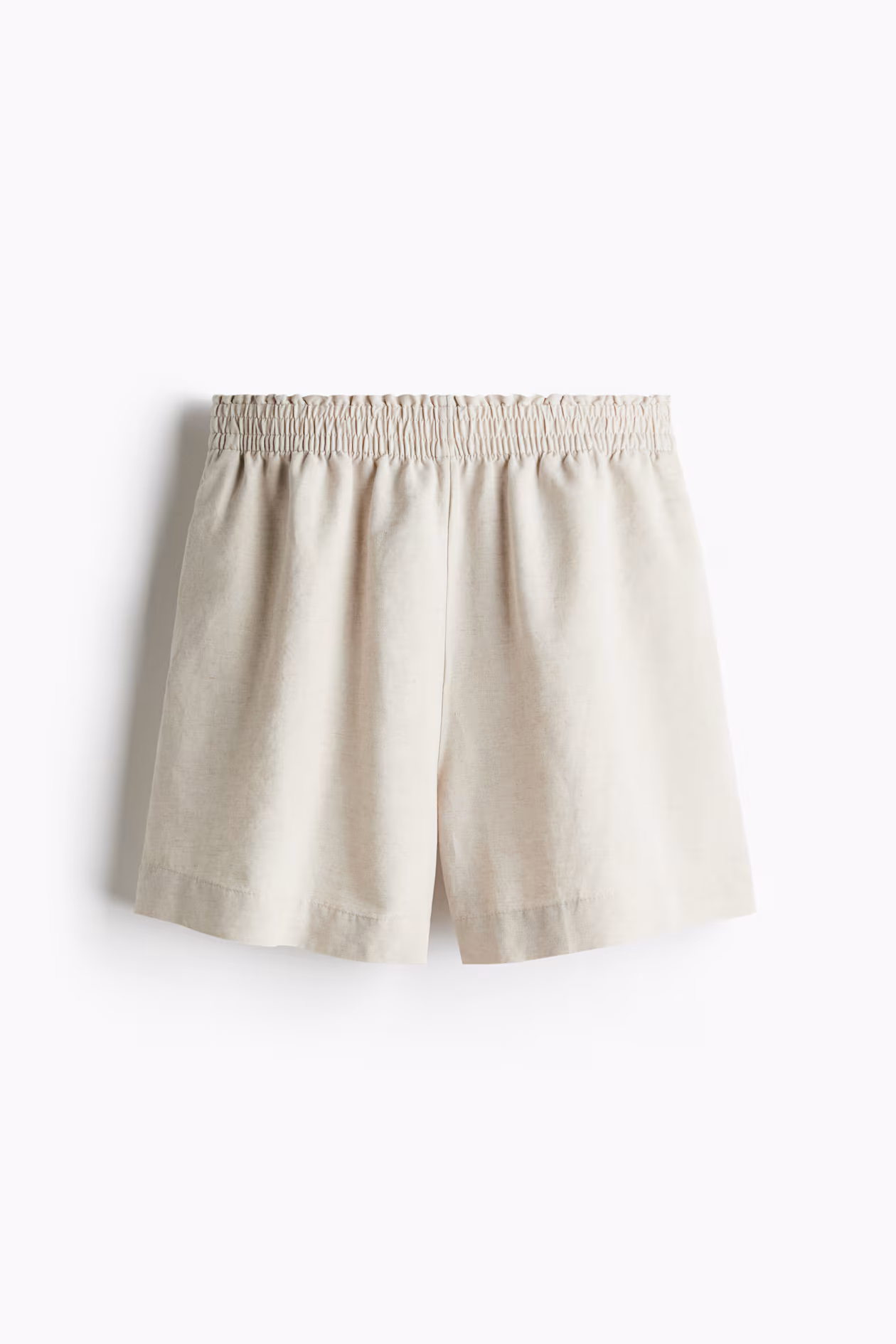Loose-fit shorts in a woven linen blend. High waist, smocked elastic at waistband, and discreet side pockets.