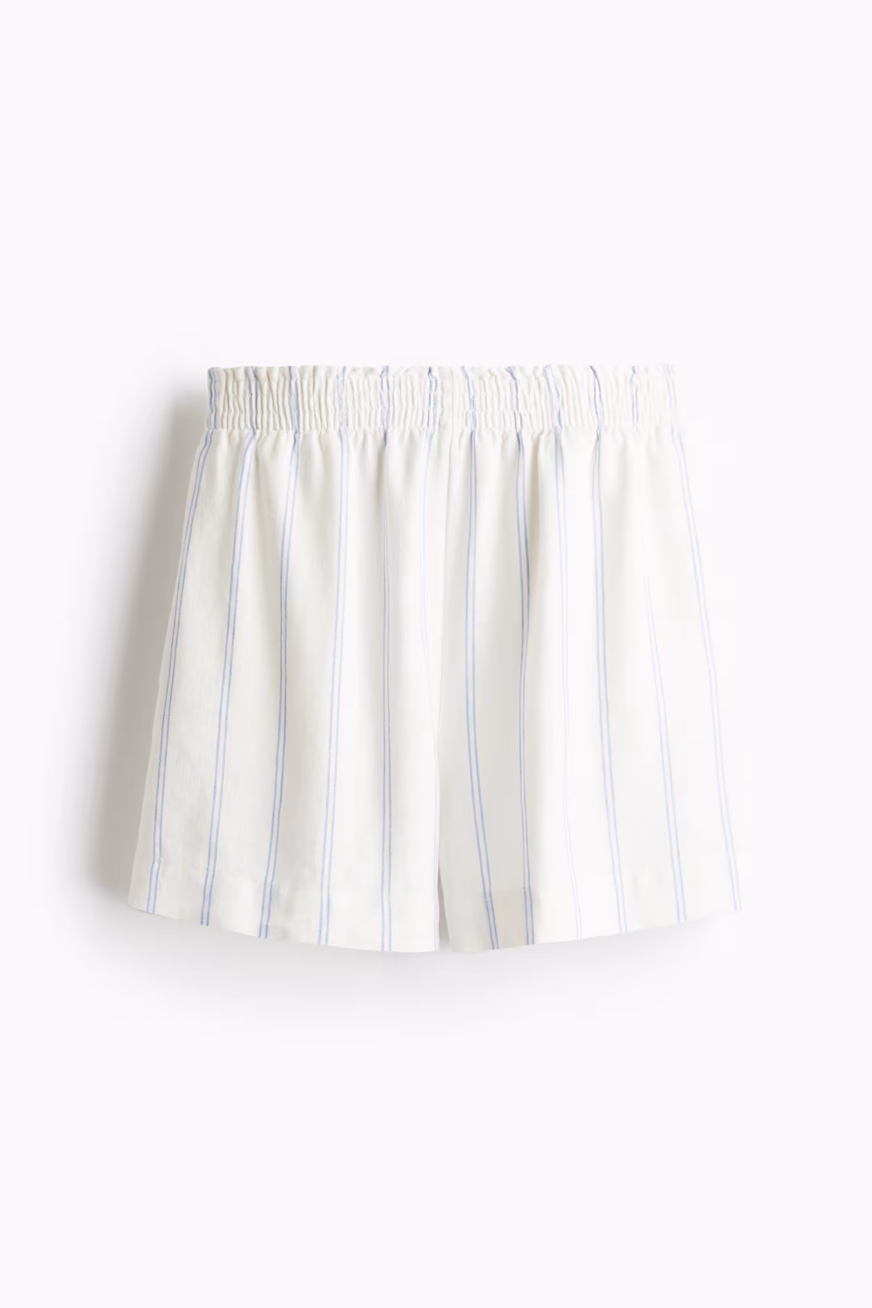Loose-fit shorts in a woven linen blend. High waist, smocked elastic at waistband, and discreet side pockets.